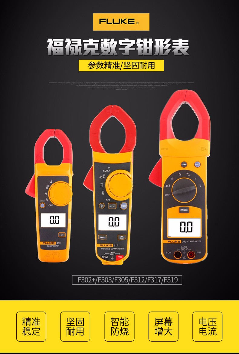 FLUKE福禄克钳形表钳形电流表钳形万用表高精度钳型万能表 FLUKE303 交流600A