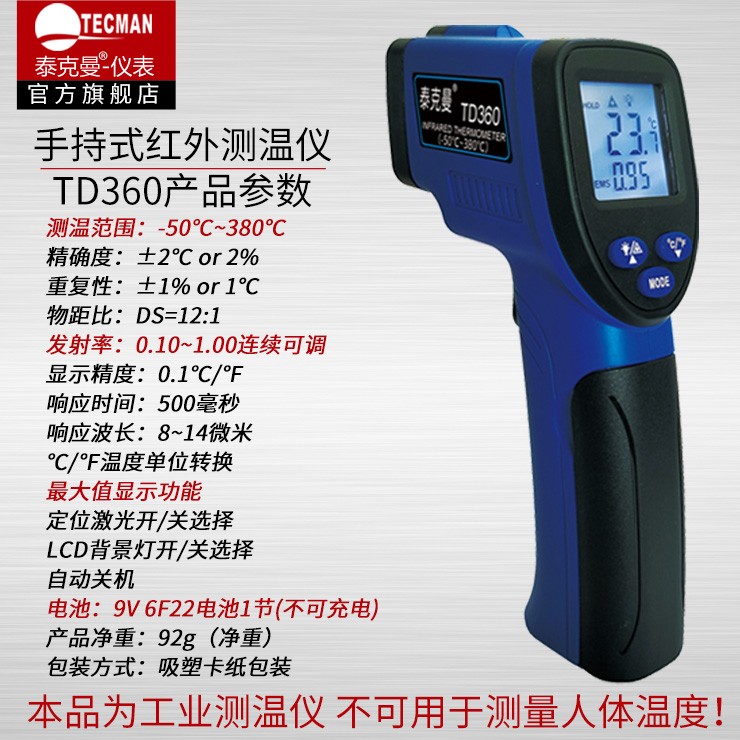 泰克曼手持式红外测温仪工业型红外测温仪红外测温枪温度计红外测温仪红外枪温度表 TD360