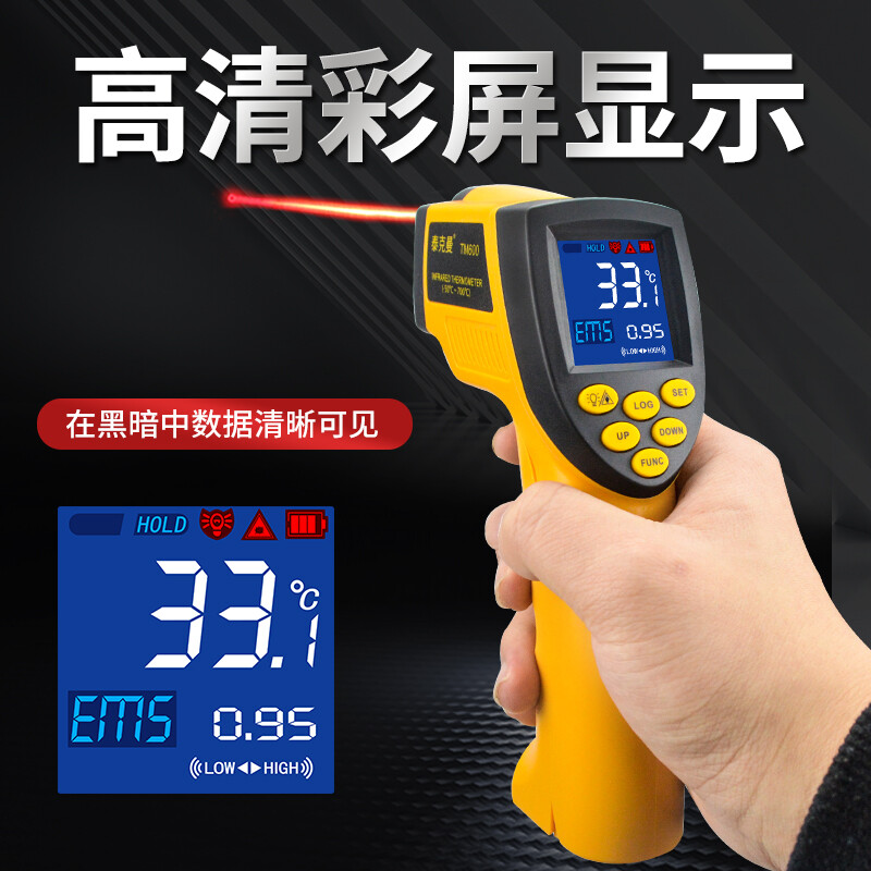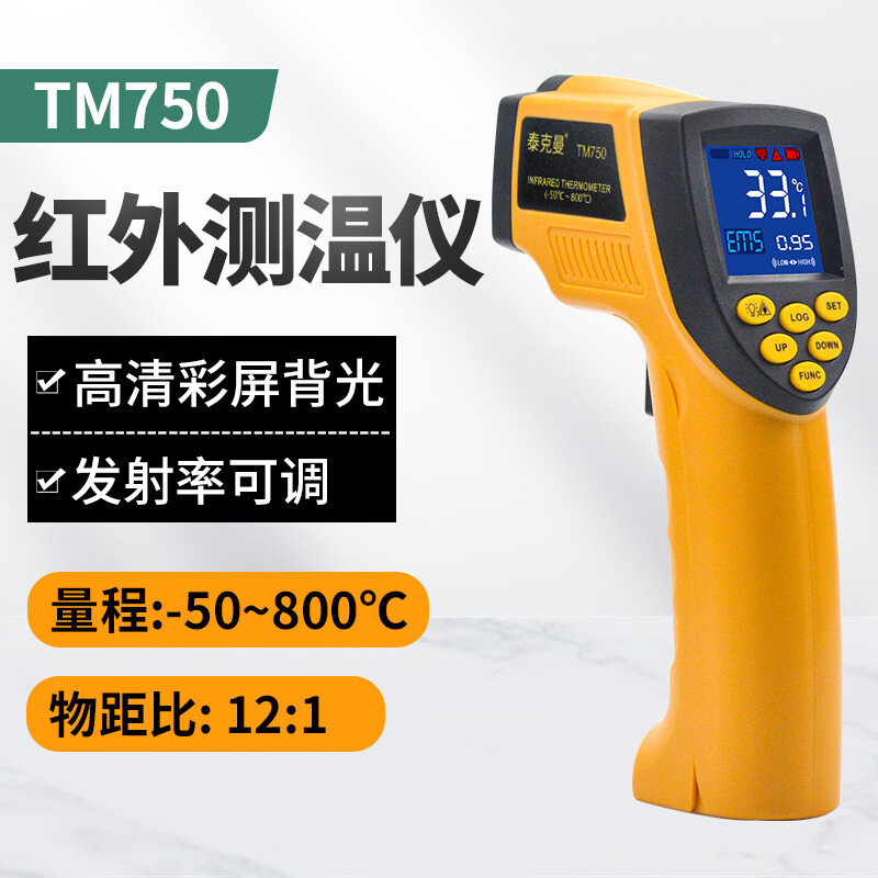 泰克曼测温枪工业红外线测温仪高精度商用非接触式红外温度计 TM750测温枪(-50~800℃ 12:1)