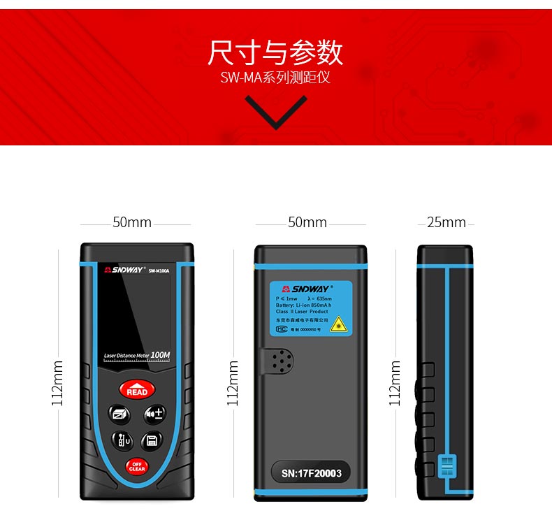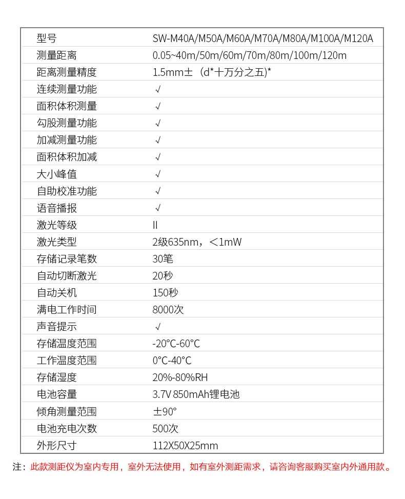 深达威 激光测距仪手持充电式红外线测量仪电子尺 测量工具 室内测距仪 SW-M70A (充电语音款)
