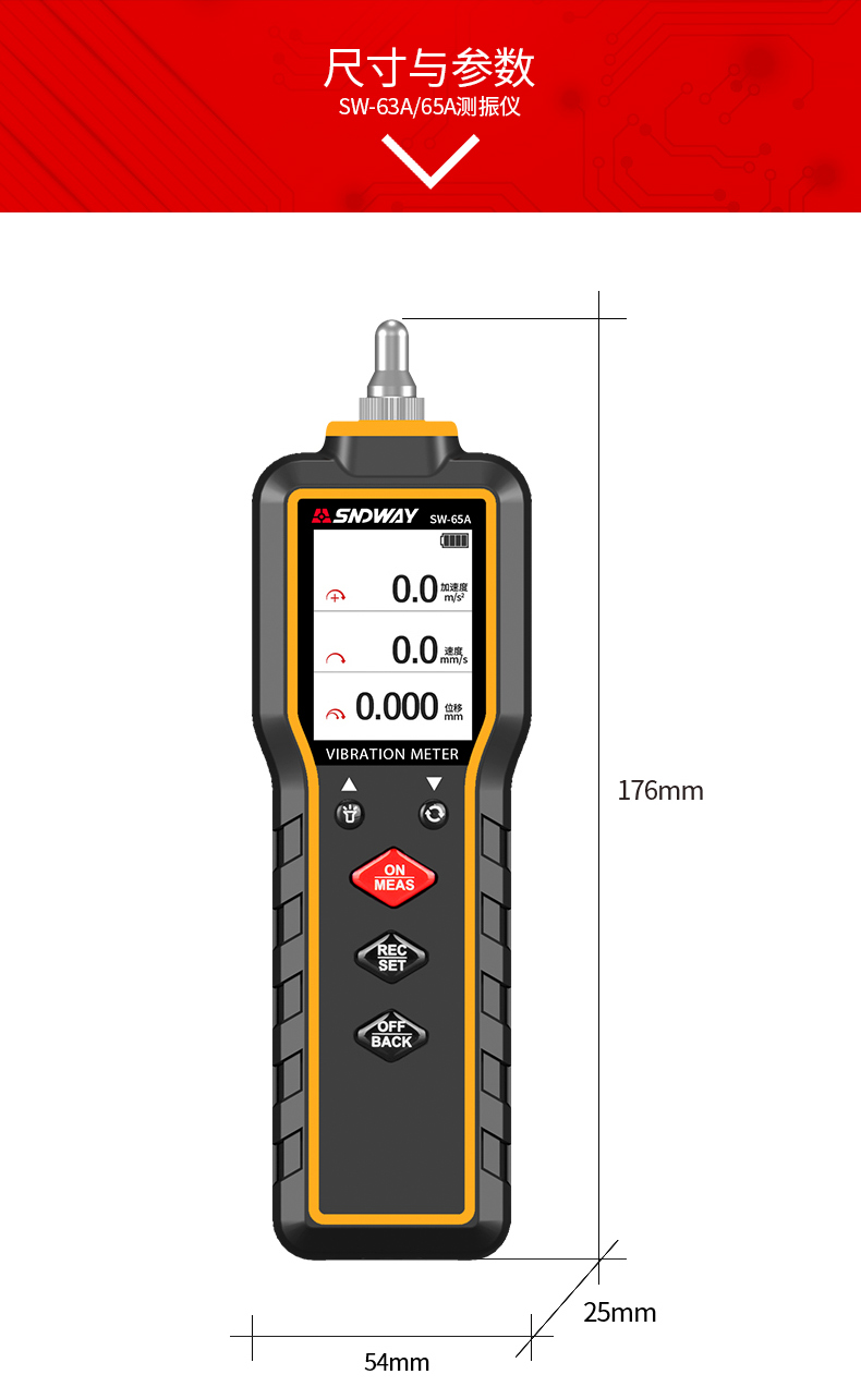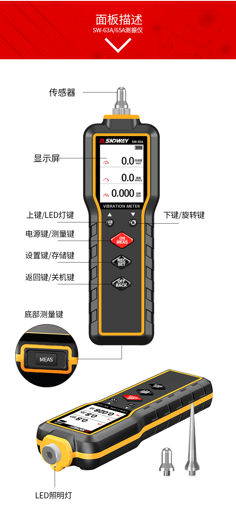 深达威SW-63A手持一体式测振仪便携式振动测试仪机械故障检测仪电机马达测震仪 SW-63A黑白屏单显
