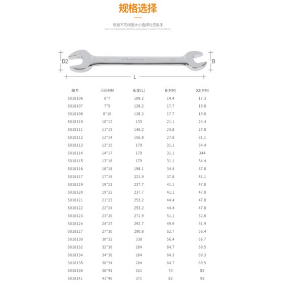 钢盾 S018116 公制精抛光双开口扳手16x18mm