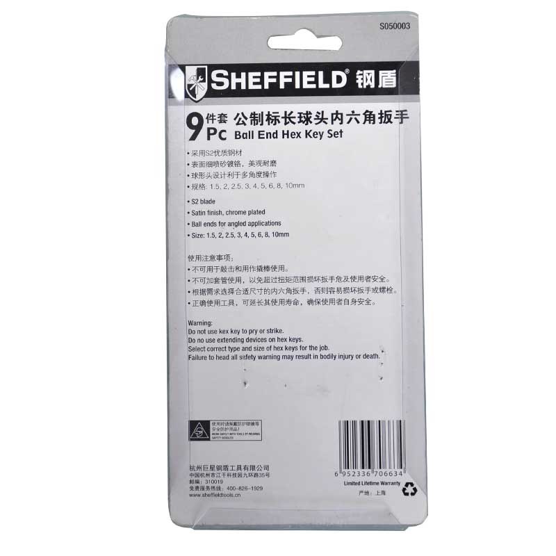 钢盾 S050003 9件套公制标长球头内六角扳手