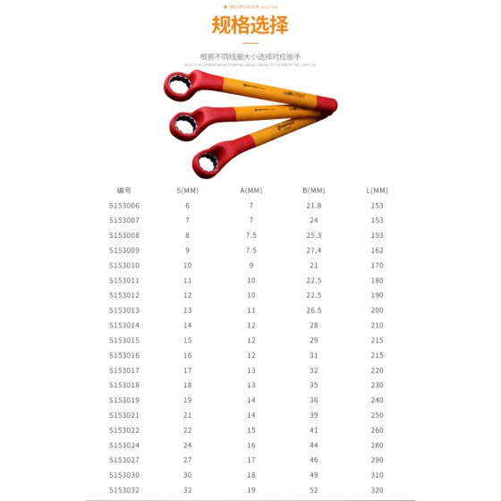 钢盾 S153006 注塑型双色绝缘梅花扳手6mm