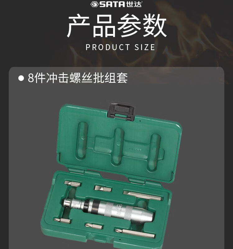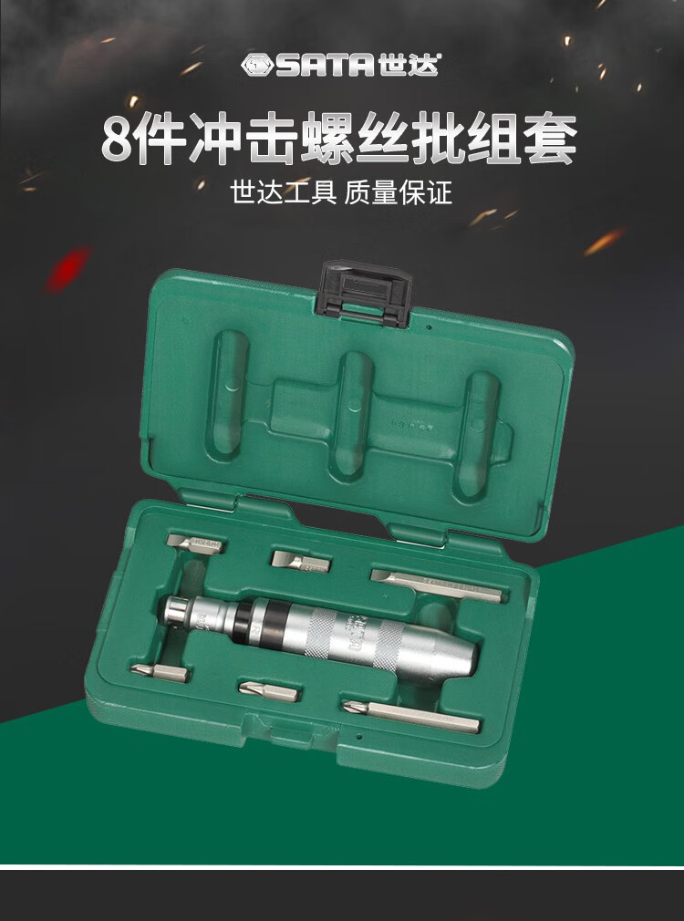 世达(SATA) 8件冲击螺丝批组套 起子改锥螺丝刀 工具套装09602定制 09602 (09602) 8件冲击螺丝批组套