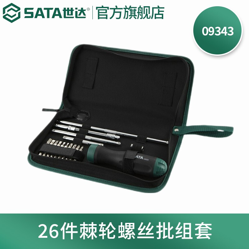 世达(SATA)09343 螺丝刀套装棘轮螺丝批起子组十字一字星形内六角旋具头铬钼钒合金钢26件1/4英寸