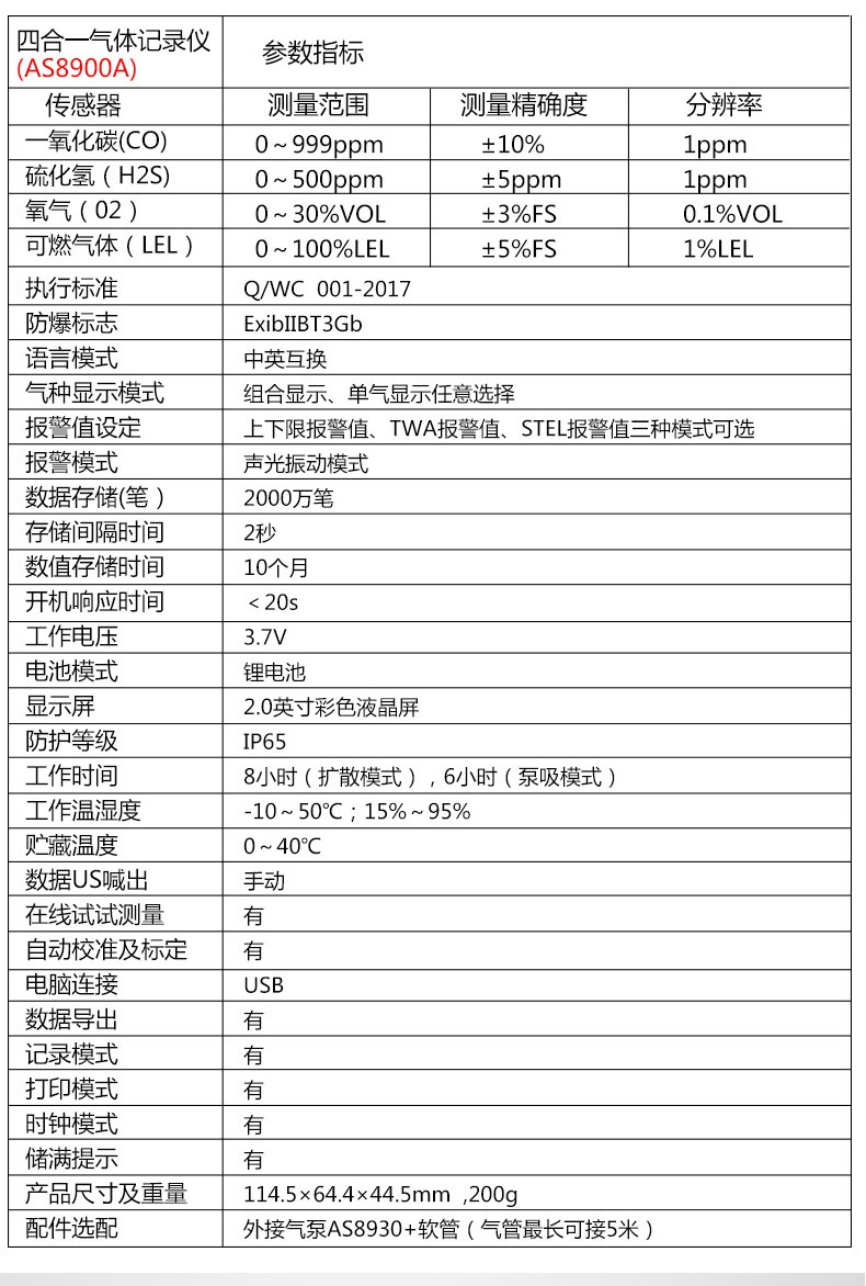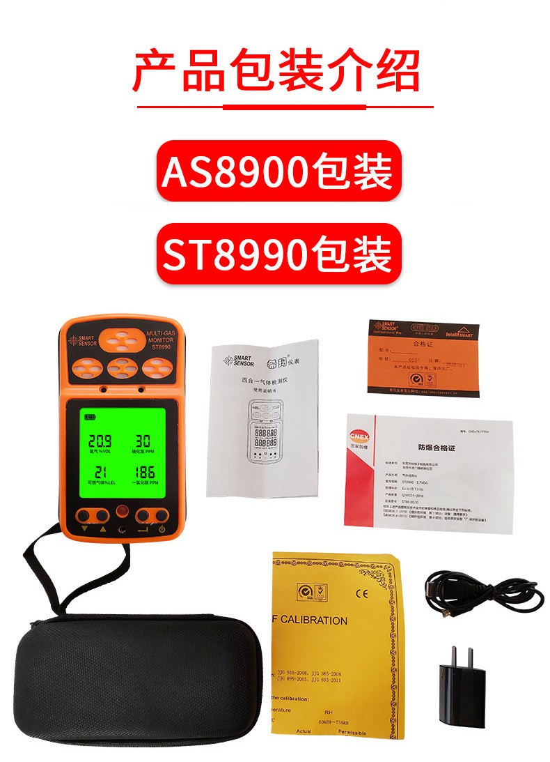 希玛AS8900四合一气体检测仪有毒有害气体检测仪防爆型气体报警器 ST8900标配