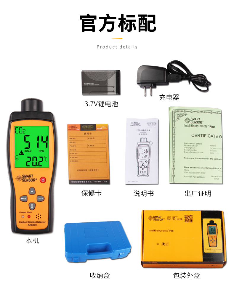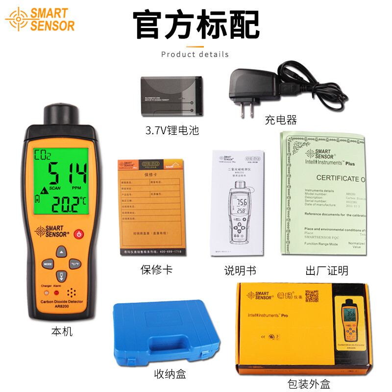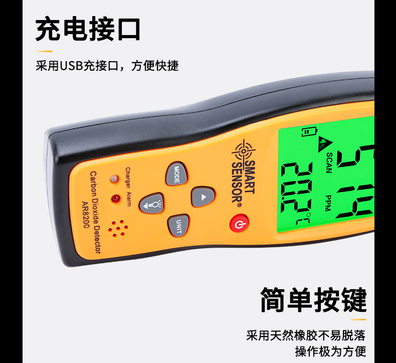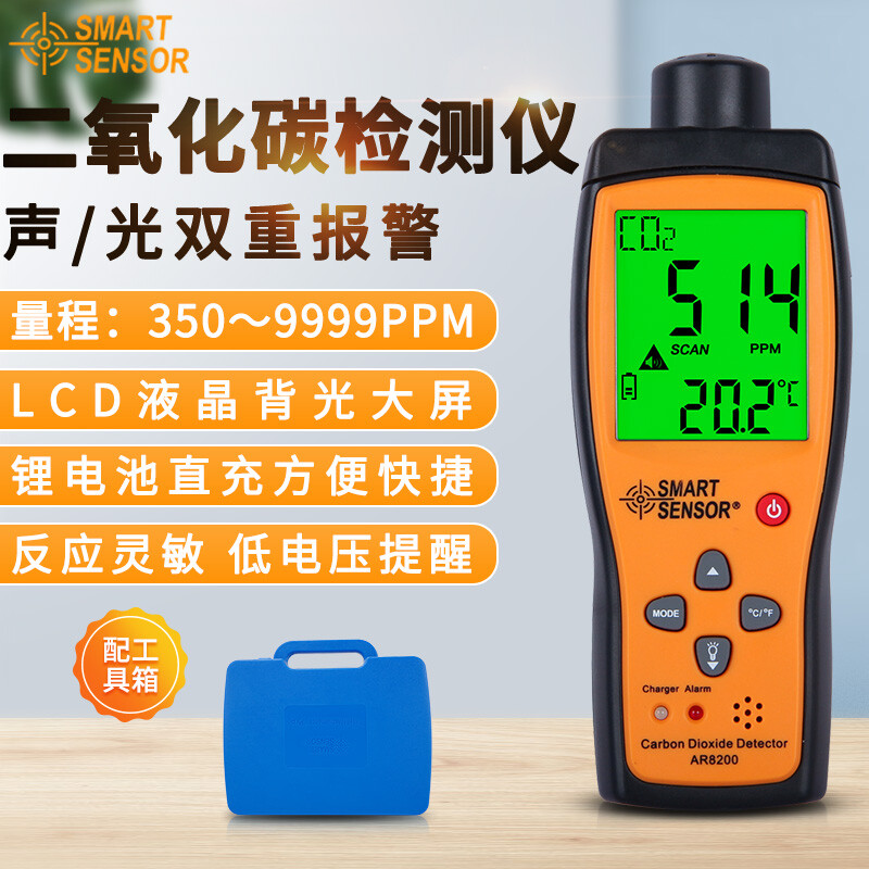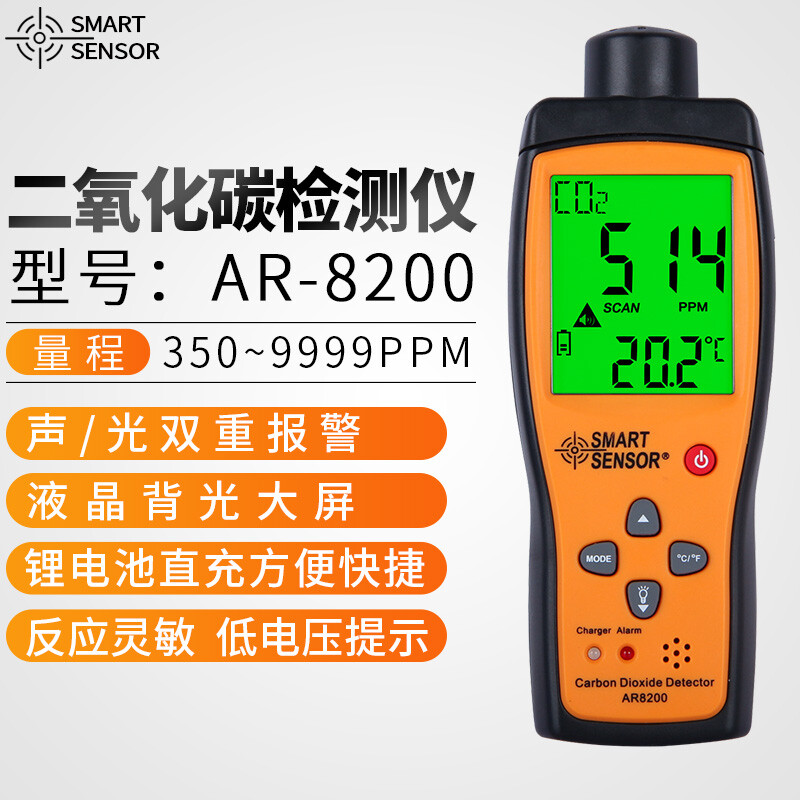 希玛AR8200 二氧化碳检测仪工业级便携式CO2气体测试报警器二氧化碳检测仪 AR8200(量程:350-9999PPM)