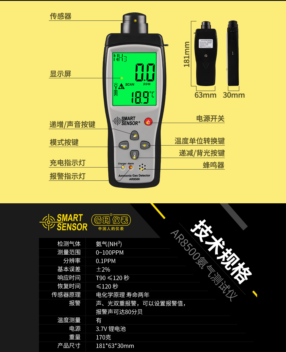 希玛AR8500氨气检测仪 NH3气体检测仪 氨气报警器 声光报警