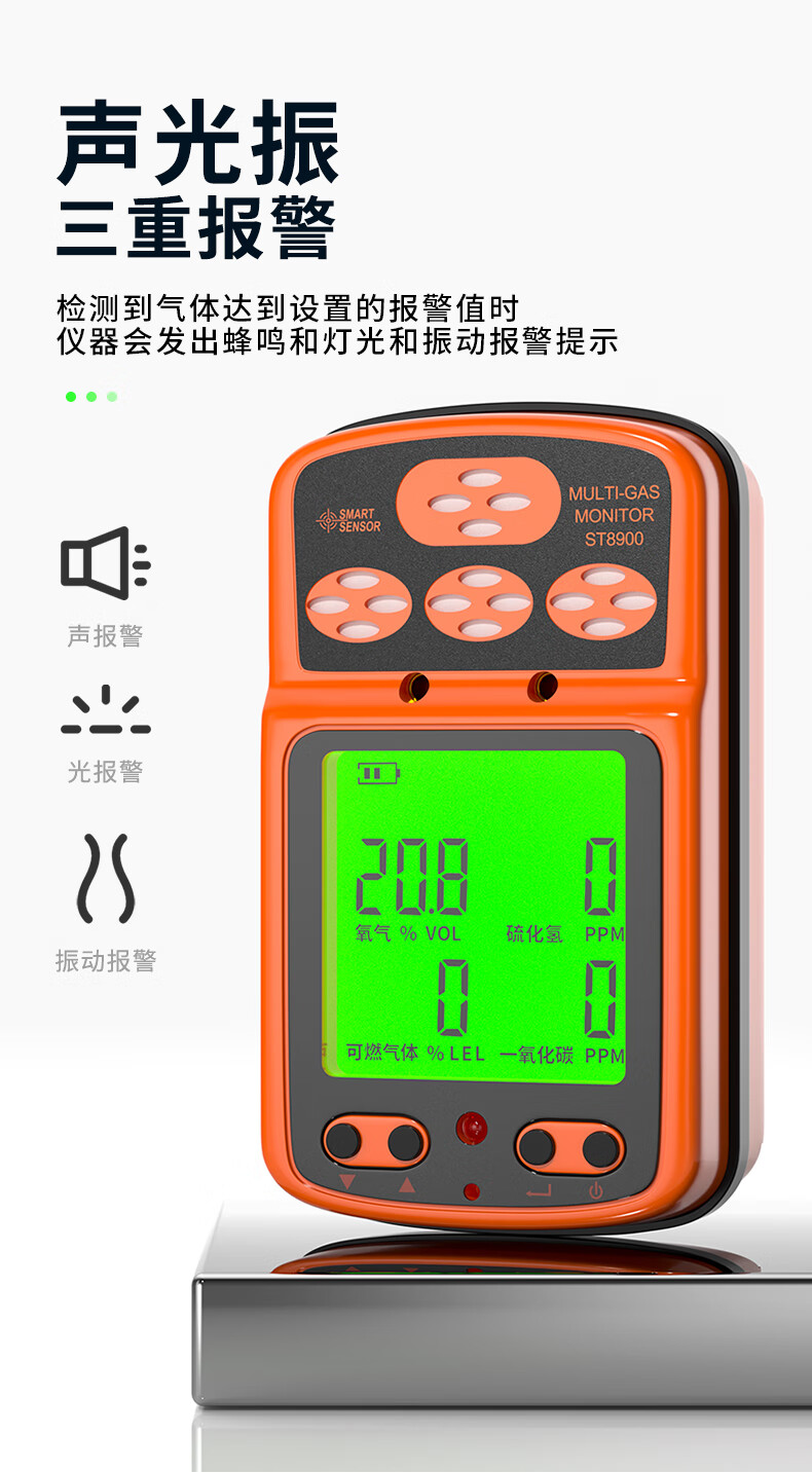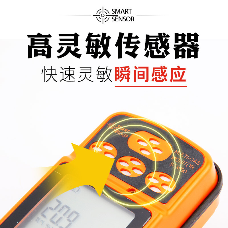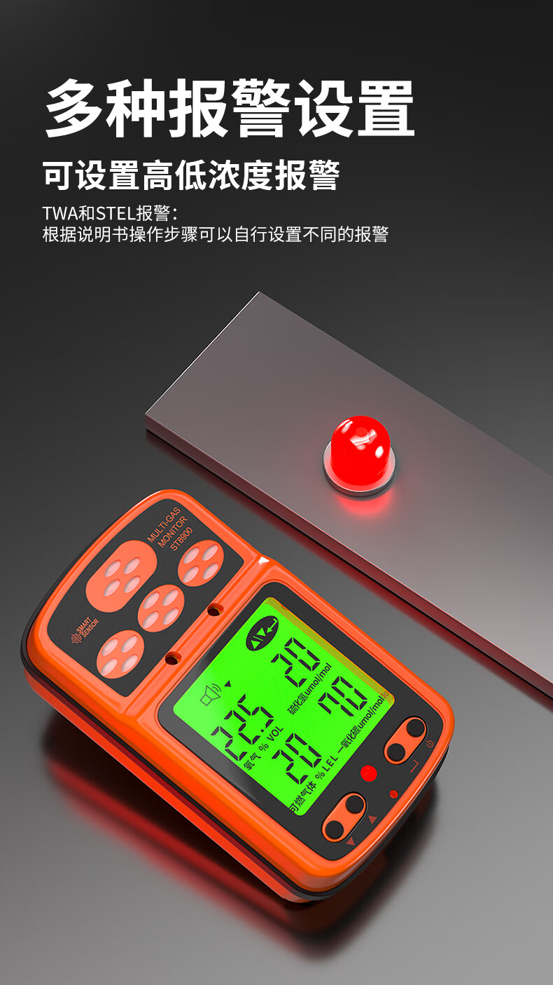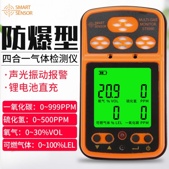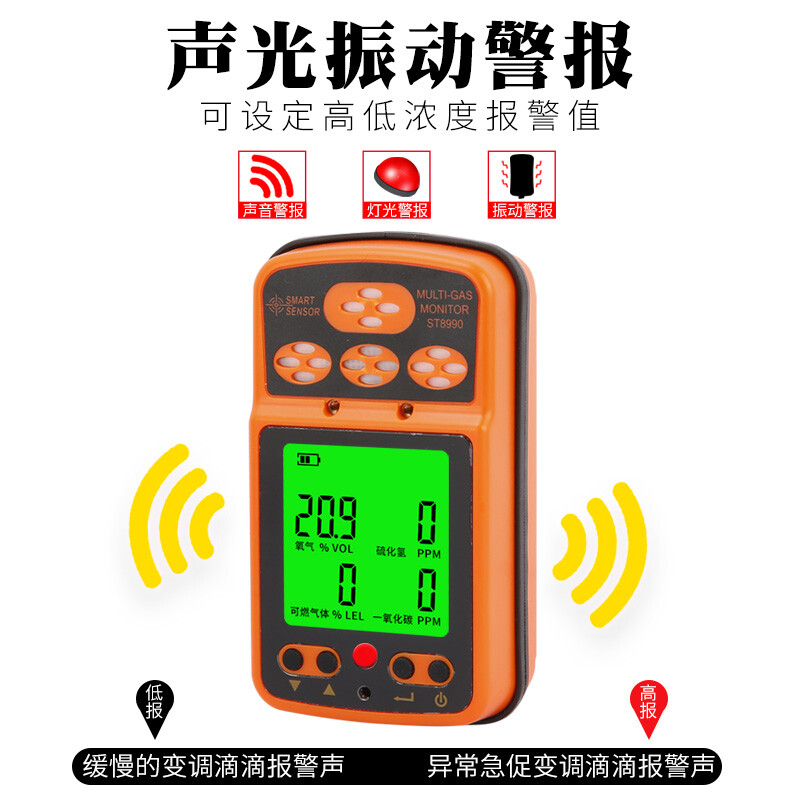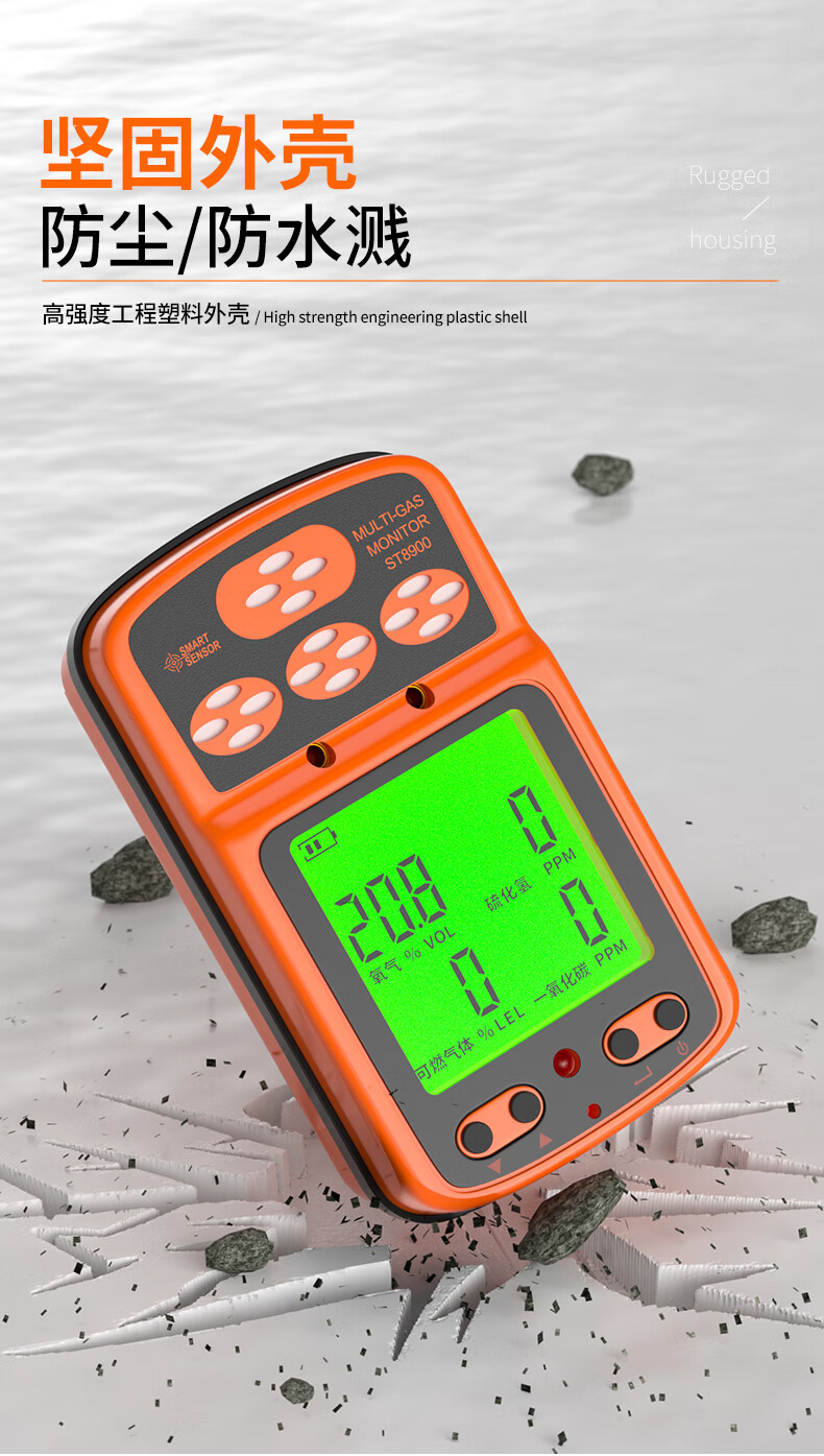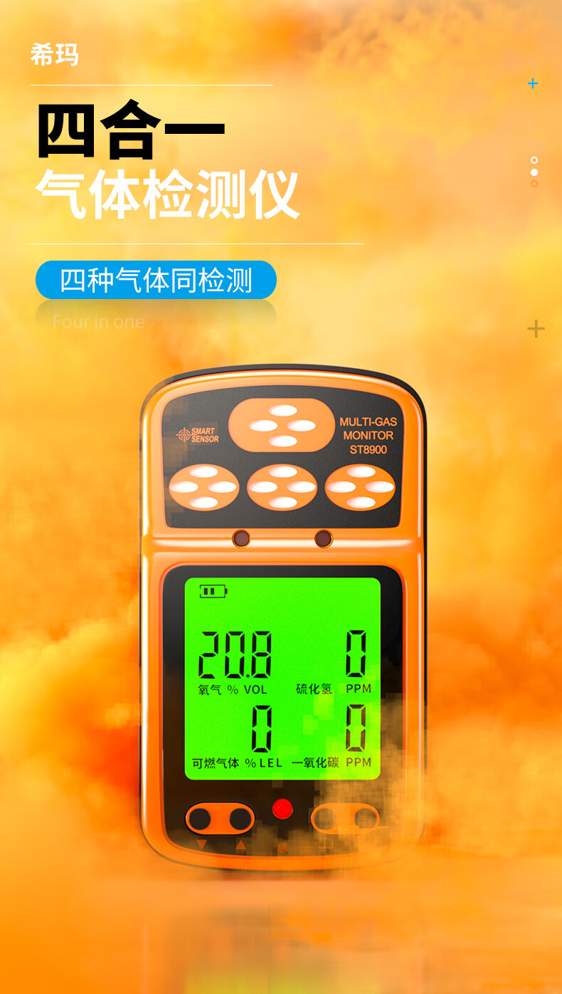 希玛 四合一气体检测仪 便携扩散式可燃气体一氧化碳氧气有毒有害气体报警器扩散式硫化氢气体检测仪 ST-8990扩散式四合一气体检测仪