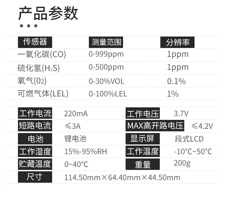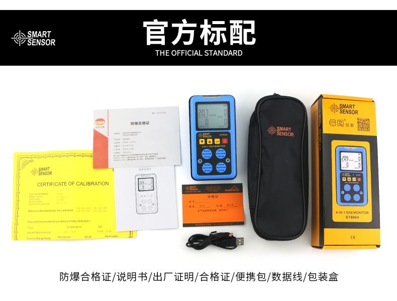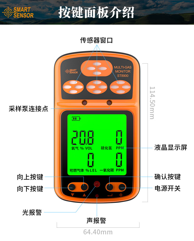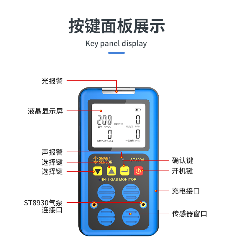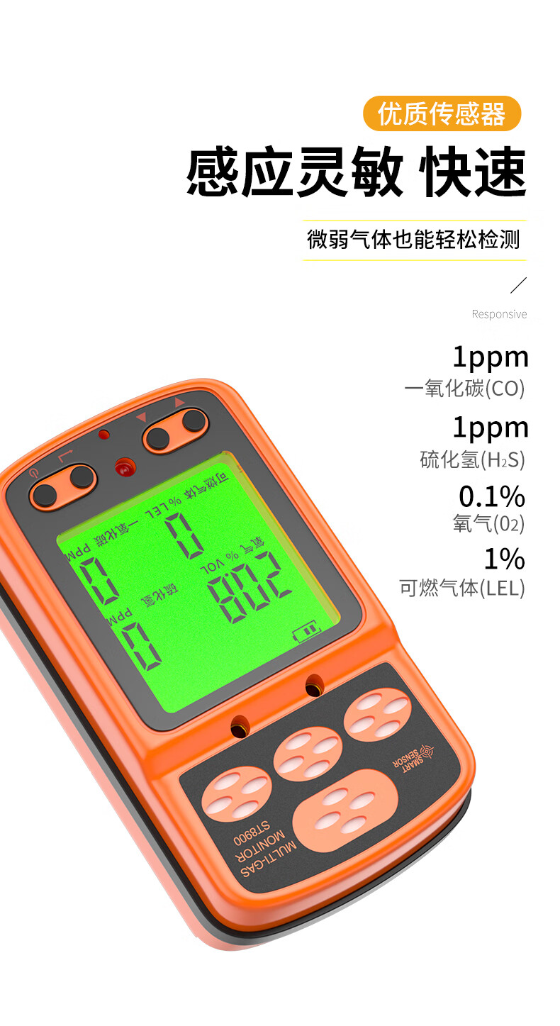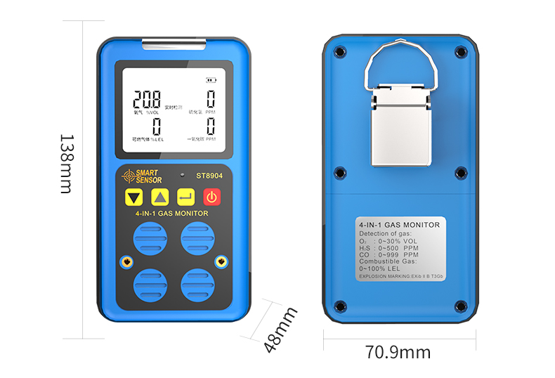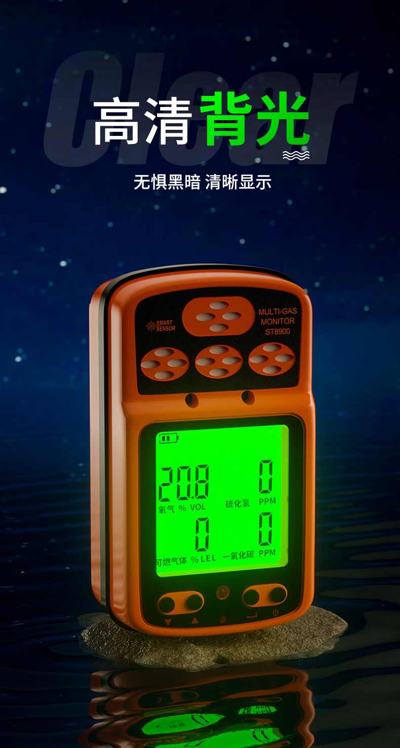 希玛 四合一气体检测仪 便携扩散式可燃气体一氧化碳氧气有毒有害气体报警器扩散式硫化氢气体检测仪 ST-8990扩散式四合一气体检测仪
