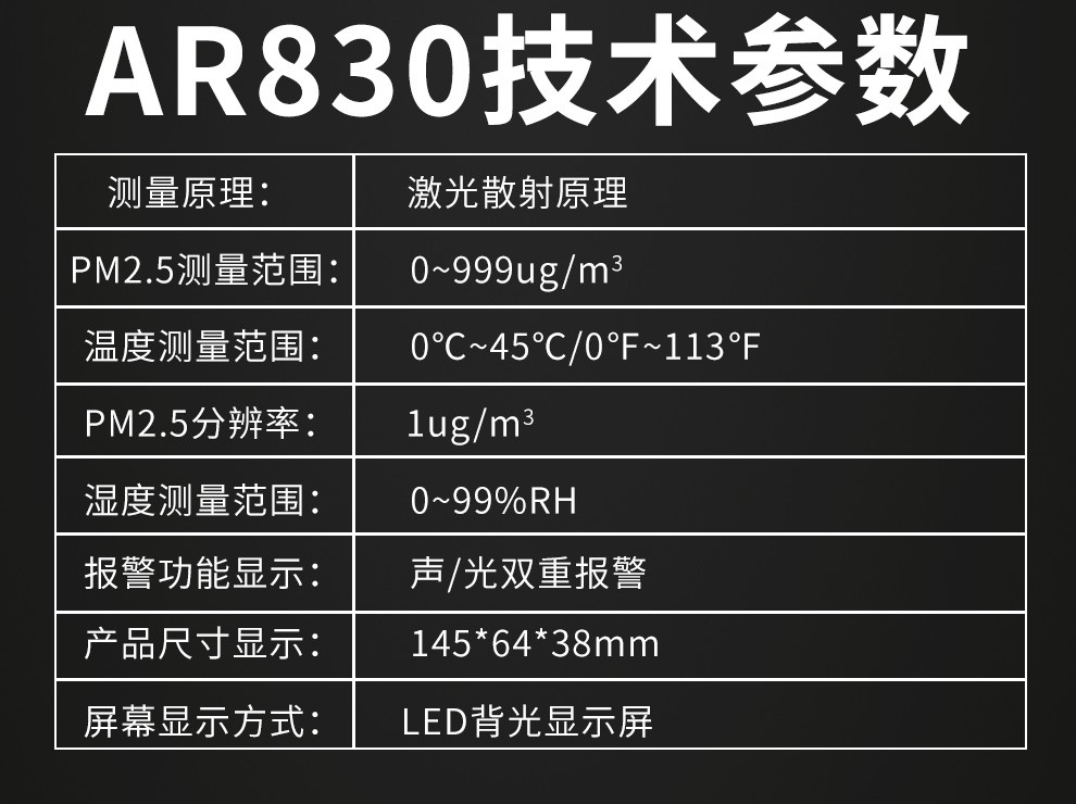 希玛AR830A甲醛检测仪家用 空气质量自监测试仪PM2.5检测仪室内测甲醛仪器AR820 AR830A PM2.5检测仪