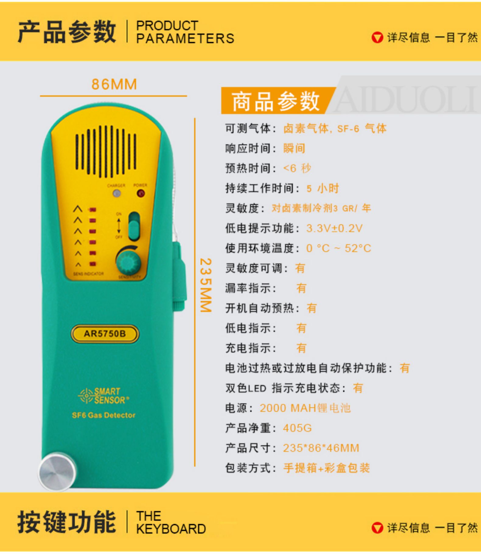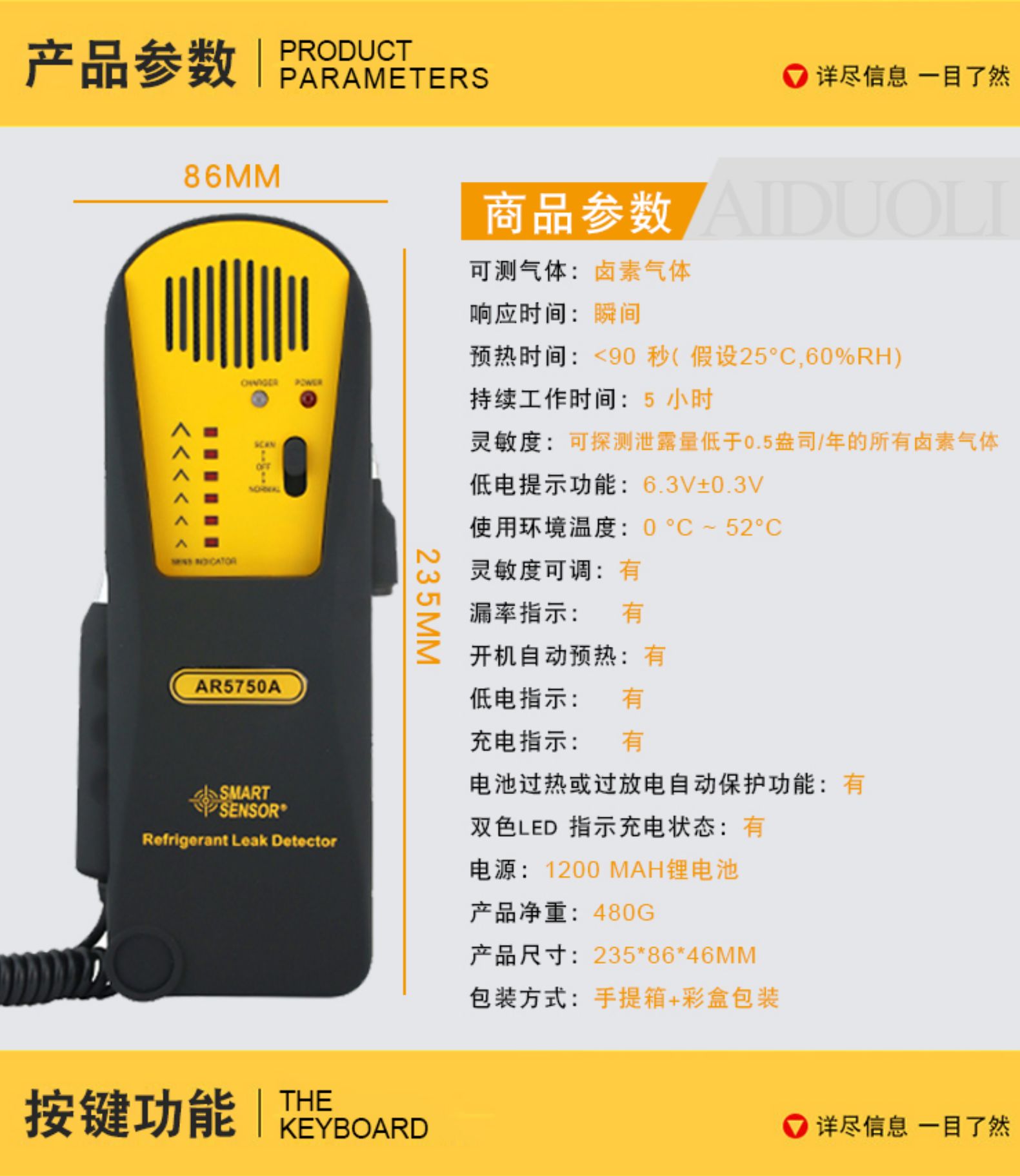 希玛AS5750 卤素气体检测仪 AR5750A 汽车电子冷媒空调制冷剂 氟利昂检漏仪 SF6气体 AR5750B(高精度 SF6检测)