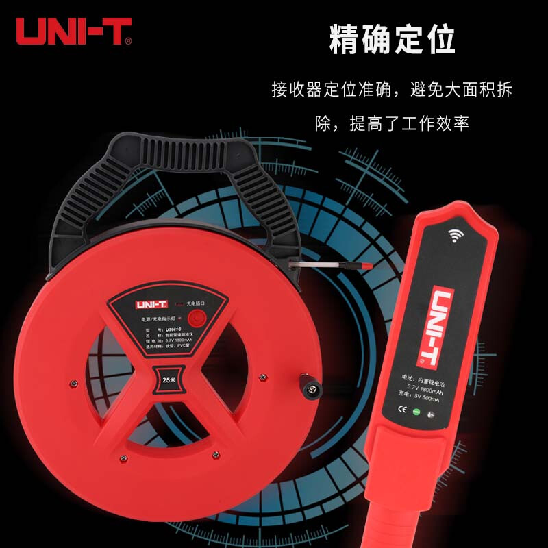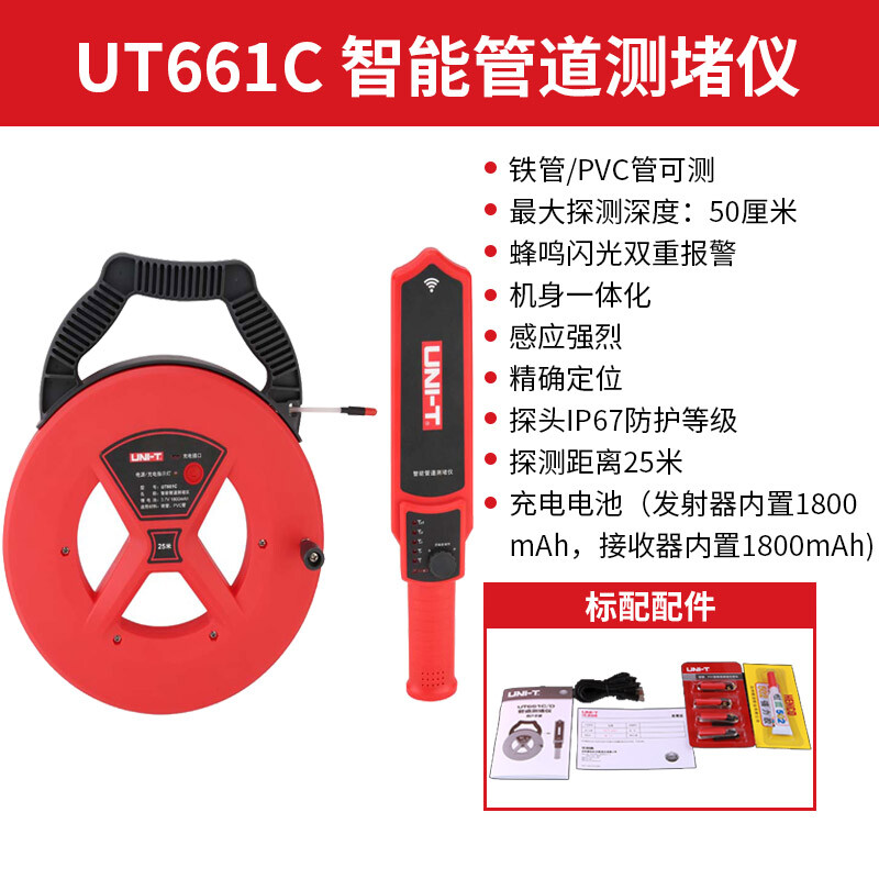优利德(UNI-T)UT661C智能管道测堵仪 防水探头铁管PVC管探测器 25米