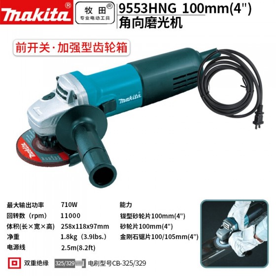 牧田 MAKITA/9553HNG角磨机多功能打磨机磨光机手磨机抛光机切割机手纱轮 前开关100mm 710W