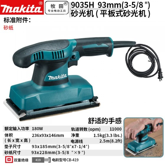 牧田/(MAKITA)9035H插电平板式砂光机砂纸机打磨机油漆腻子光工具墙面抛光机93*185 180W