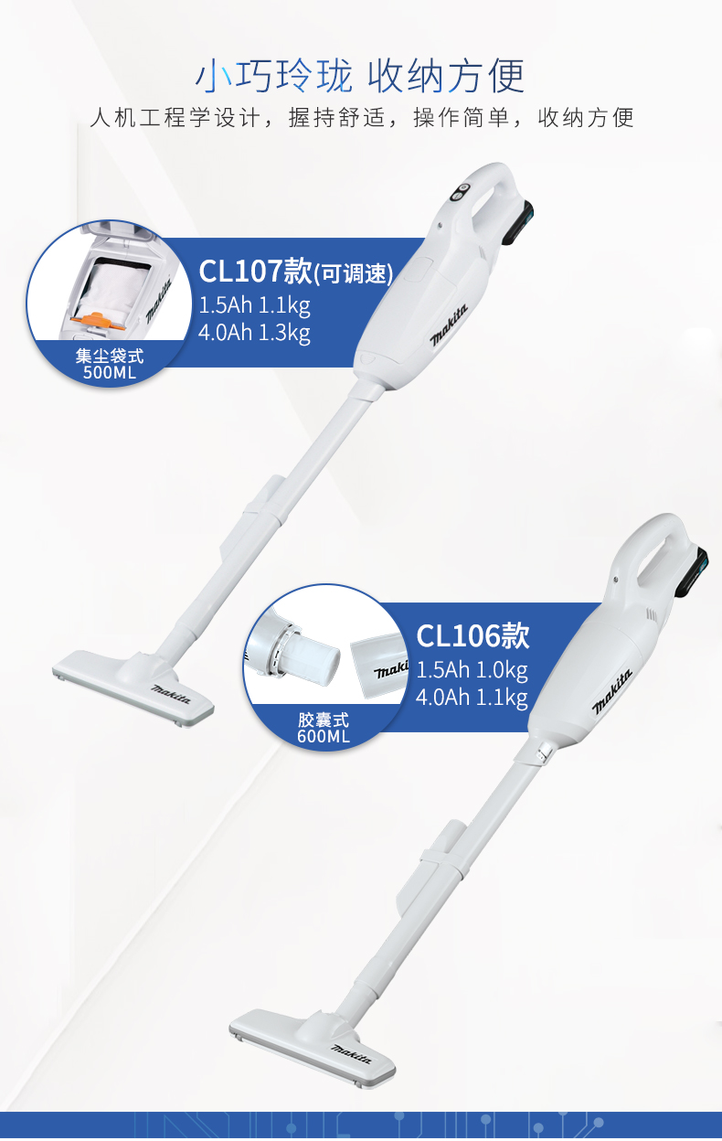 牧田充电式吸尘器CL106手持式集尘器CL107小型家用无线充电吸尘器家用小型无线充电吸尘器 CL107FDZ