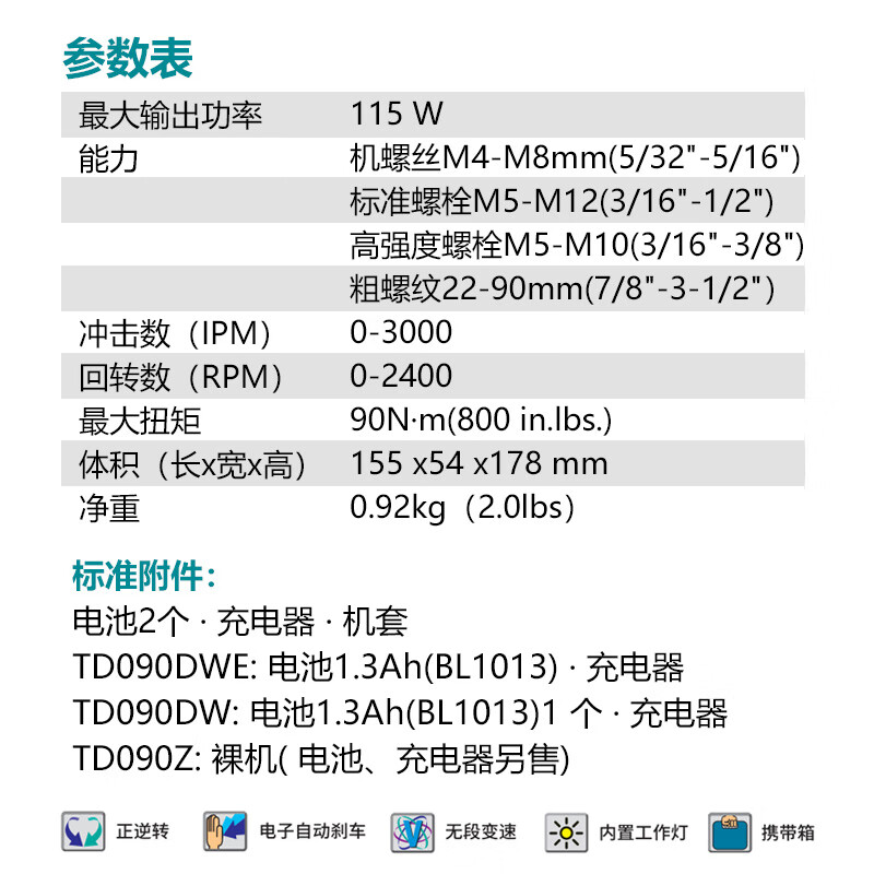牧田/MAKITA TD090DZ充电式冲击起子机冲击螺丝刀手电钻螺丝批电改锥扳手紧凑型 10.8V裸机无电池充电器