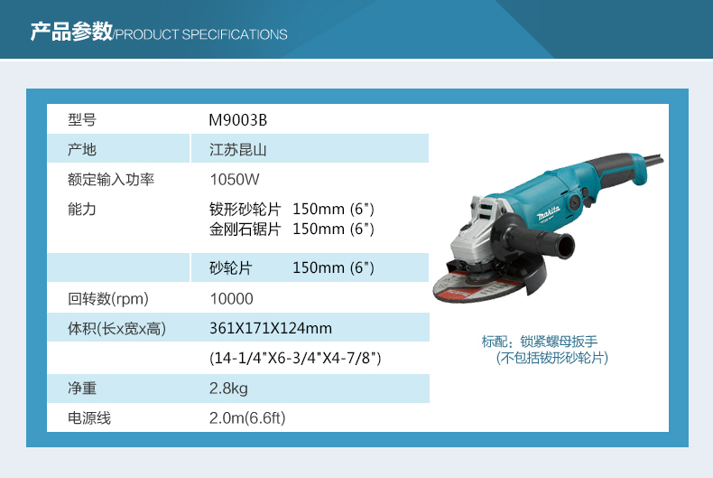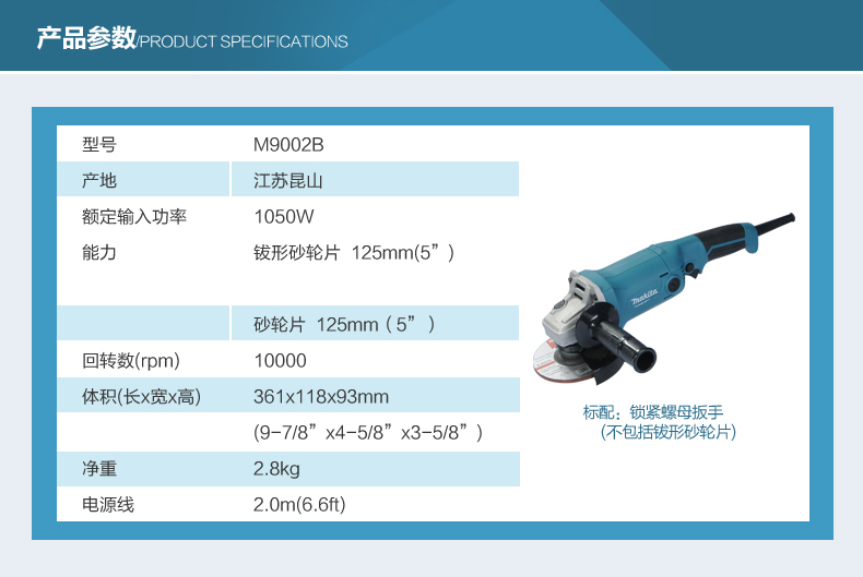 牧田MAKITA角磨机M9002B抛光机多功能打磨机切割机手砂轮125mm角向磨光机 M9002B(125mm) 标配