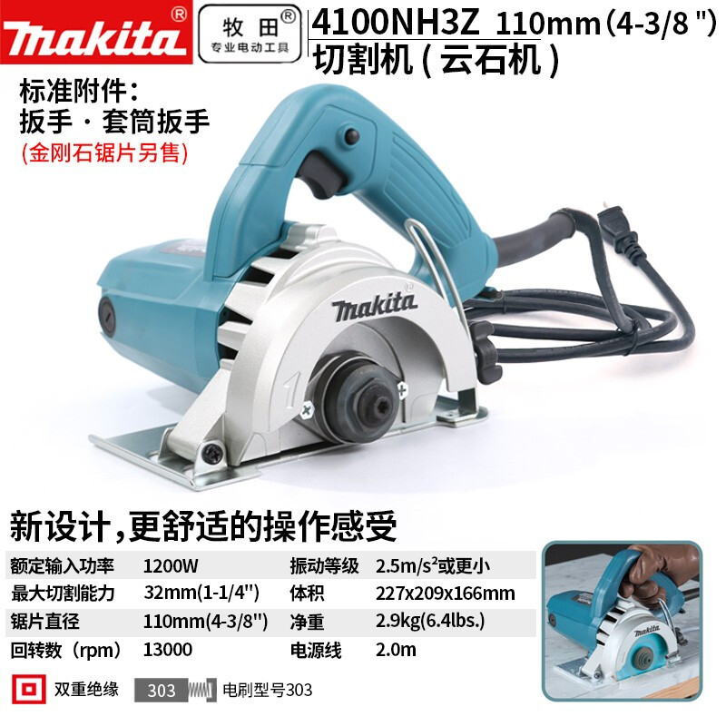 牧田/MAKITA 4100NH3Z插电式云石机大功率手提式瓷砖木工石材金属切割小型手提电锯开槽切割机1200W 110mm
