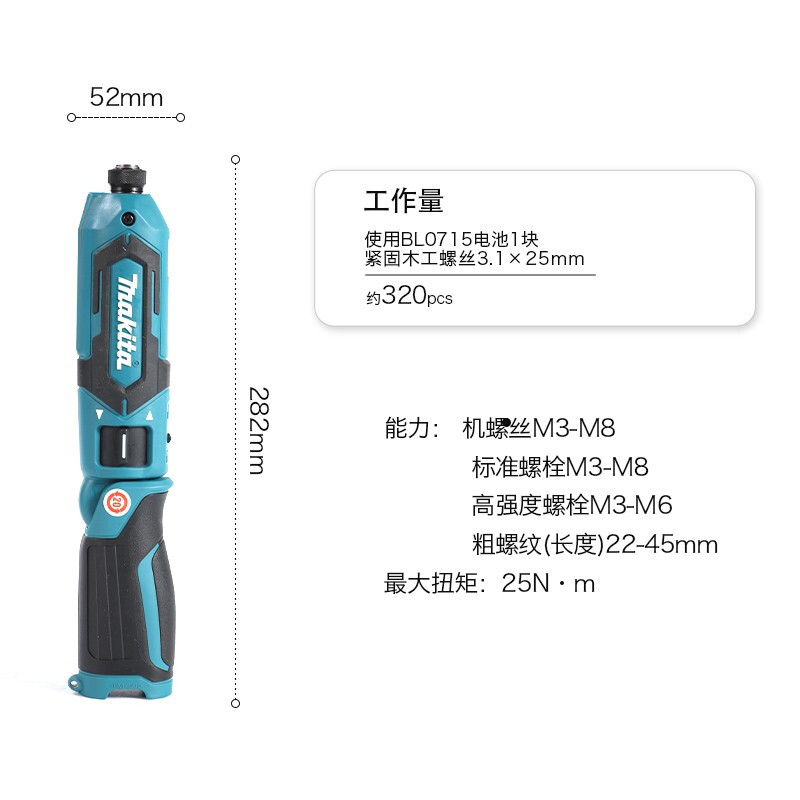 牧田/MAKITA TD022DZ锂电池充电式冲击起子机可折叠直式柄螺丝刀螺丝批电钻电锥扳手 7.2V裸机款