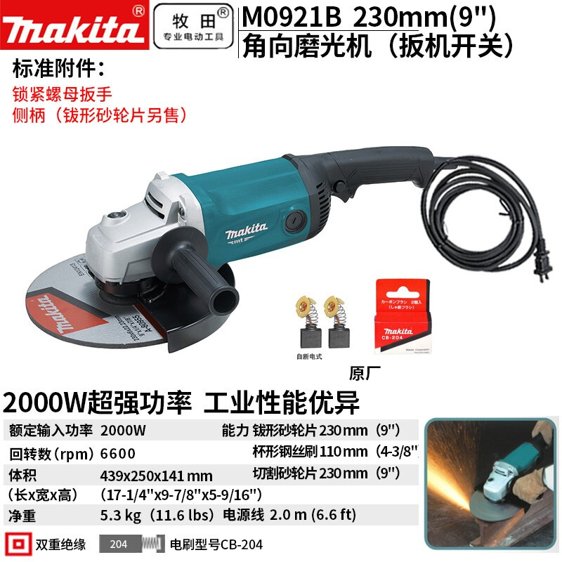 牧田/MAKITA M0921B角磨机多功能打磨机 磨光机手磨机抛光机切割机手纱轮 2000W 230mm