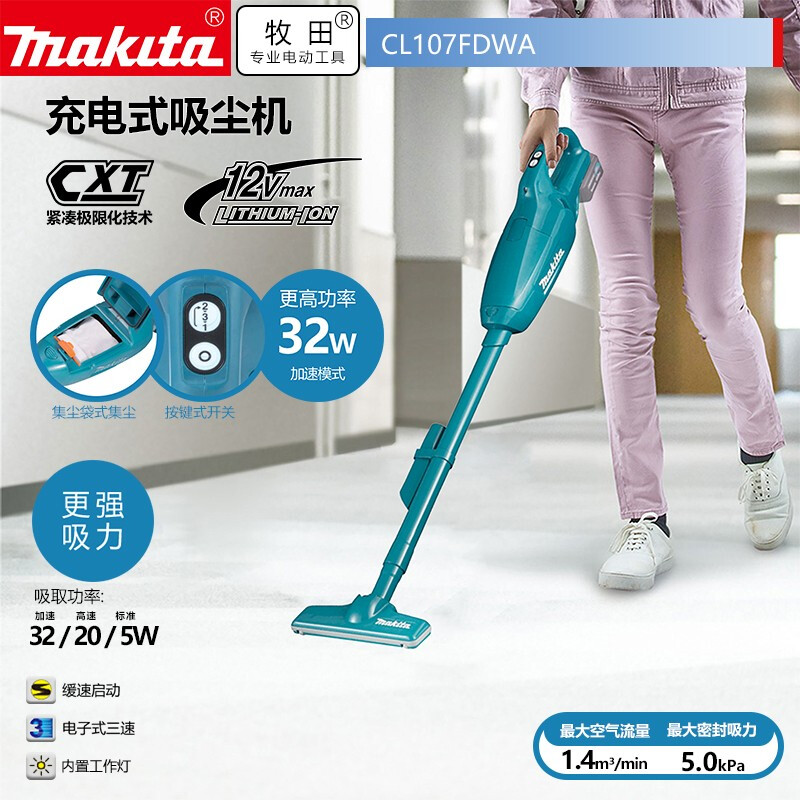 牧田/MAKITA CL107FDWA锂电池充电式吸尘机 12V2.0AH一电一充