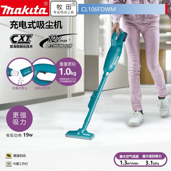 牧田/MAKITA CL106FDWM锂电池充电式吸尘机酒店家庭地毯12V4.0AH一电一充