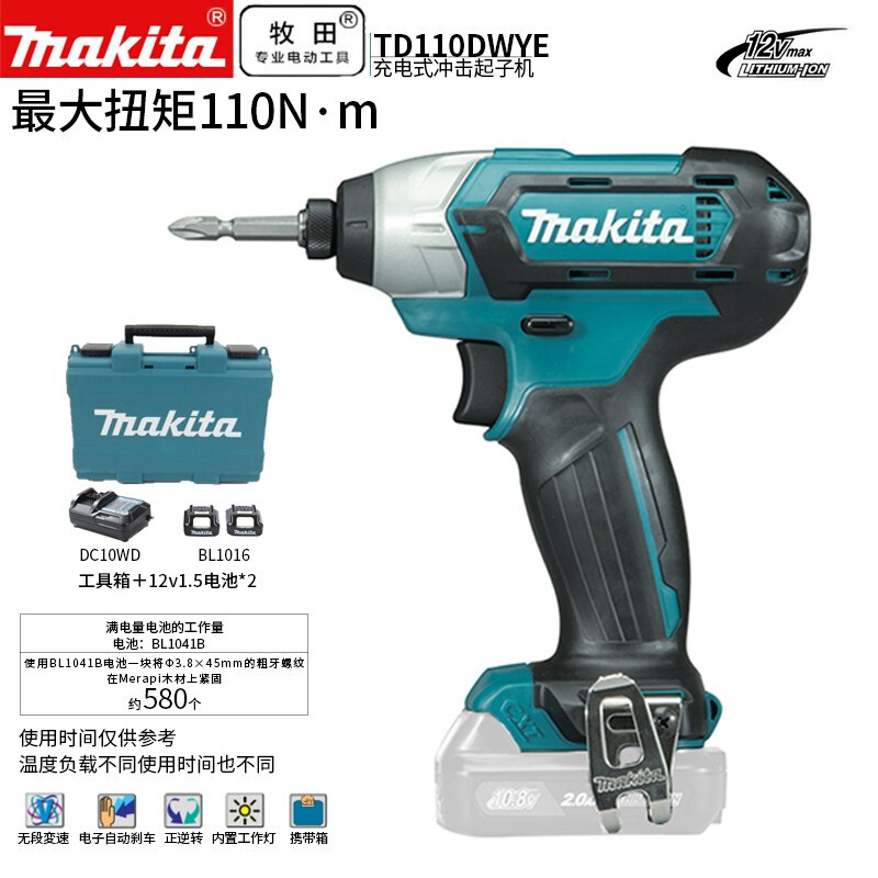 牧田/MAKITA TD110DWYE锂电池充电式冲击起子 12V1.5Ah两电一充