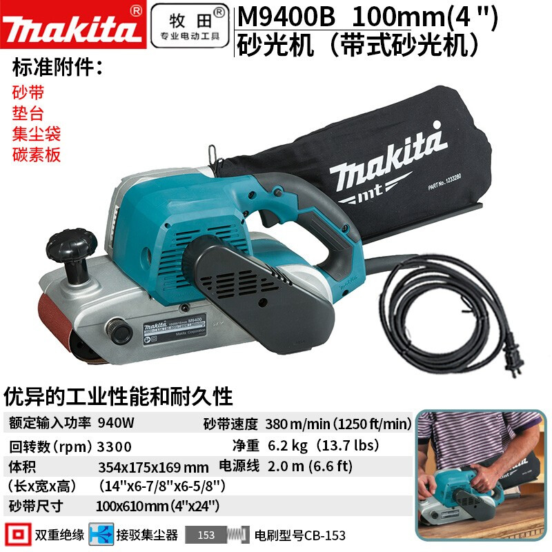 牧田/MAKITA M9400B插电带式砂光机抛光砂带机