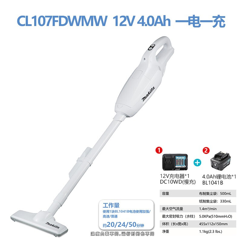 牧田/MAKITA CL107FDWMW锂电池充电式吸尘机12V4.0AH一电一充