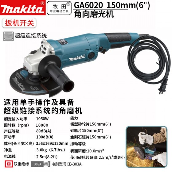 牧田-MAKITA/GA6020角磨机插电式多功能打磨机150mm1050W