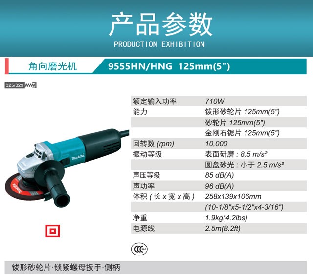 牧田makita多功能磨光机金属切割机打磨机抛光除锈电动工具9555HN125mm角磨机 GA5040C01 125mm(5)