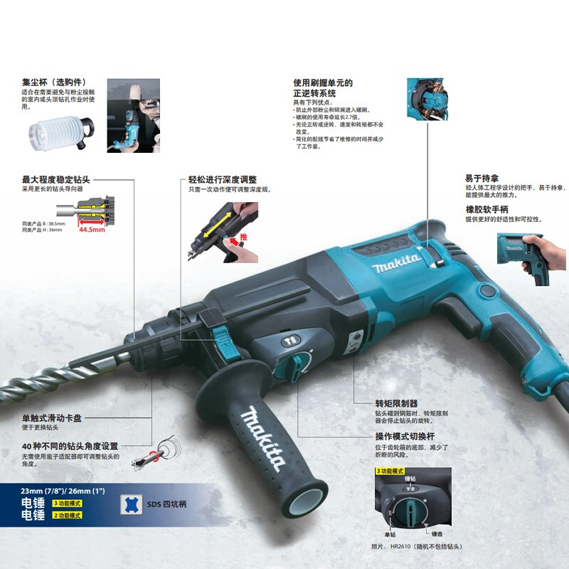 牧田/MAKITA HR2600 电锤冲击钻电钻26mm调速正反转800W马达