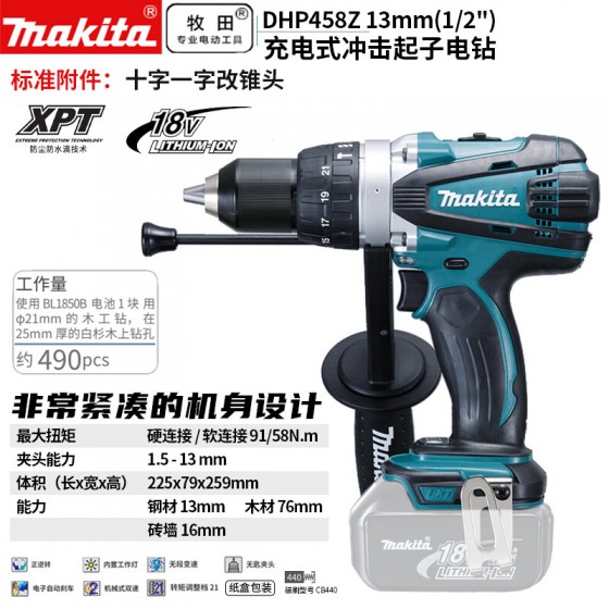 牧田/MAKITA DHP458Z锂电池充电式冲击起子 18V裸机无电池充电器13mm