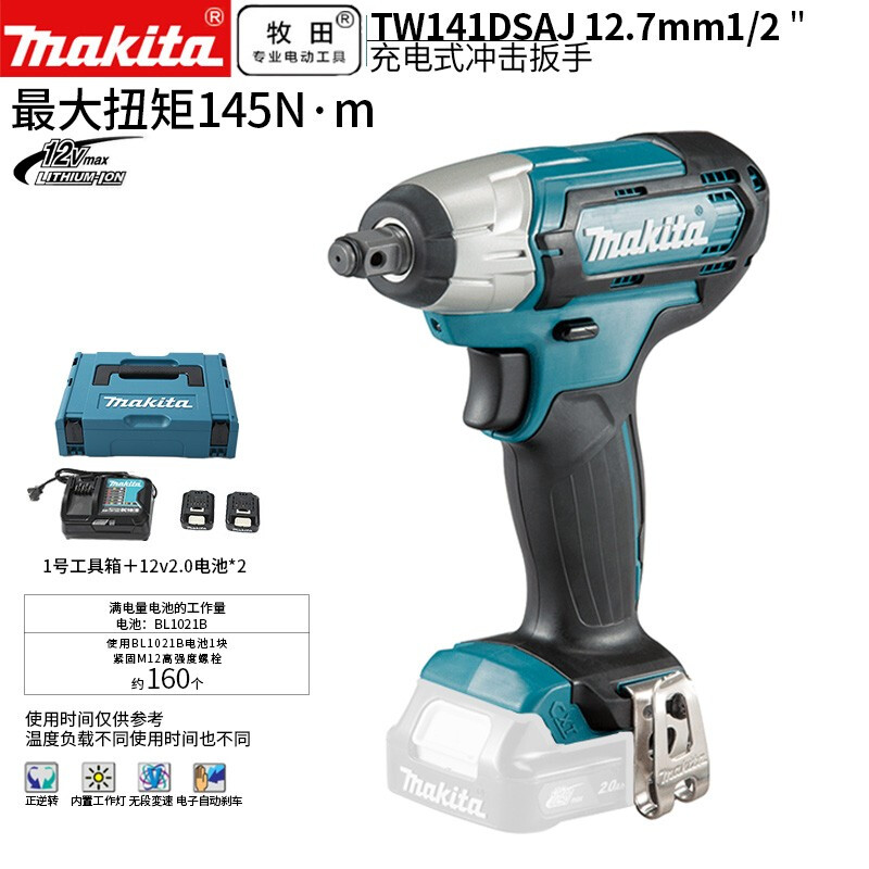 牧田/MAKITA TW141DSAJ锂电池充电式冲击扳手电动板手12V2.0Ah两电一充12.7mm(1/2)