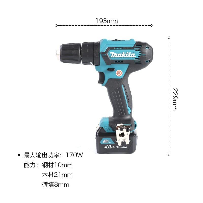 牧田/MAKITA HP333DSME锂电池充电式冲击起子电钻 12V4.0Ah两电一充10mm