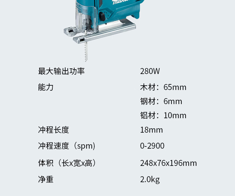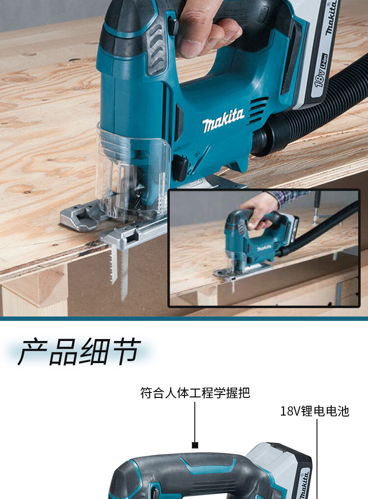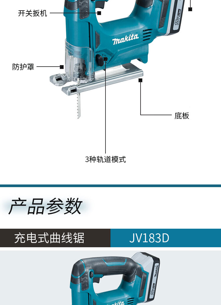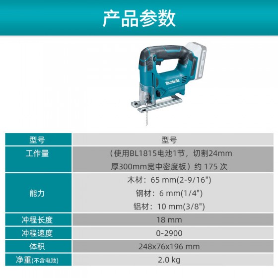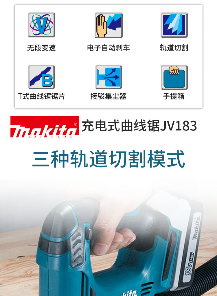牧田(MAKITA) 锂电充电式曲线锯JV183D002【2.0Ah双电快充】18mm