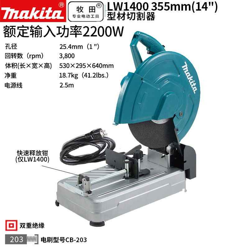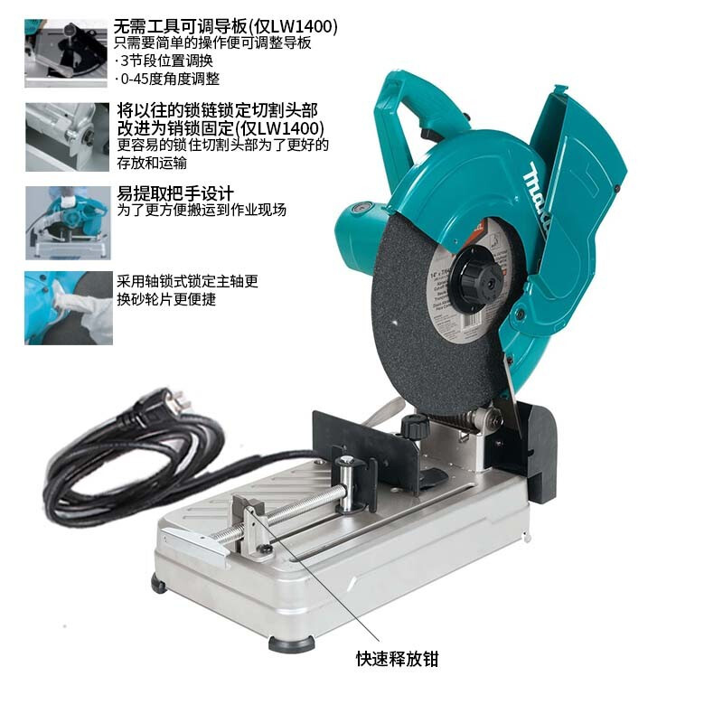 牧田/MAKITA LW1400插电大功率便携多功能小型便携式台式型材无齿砂轮切割机2200W 355mm