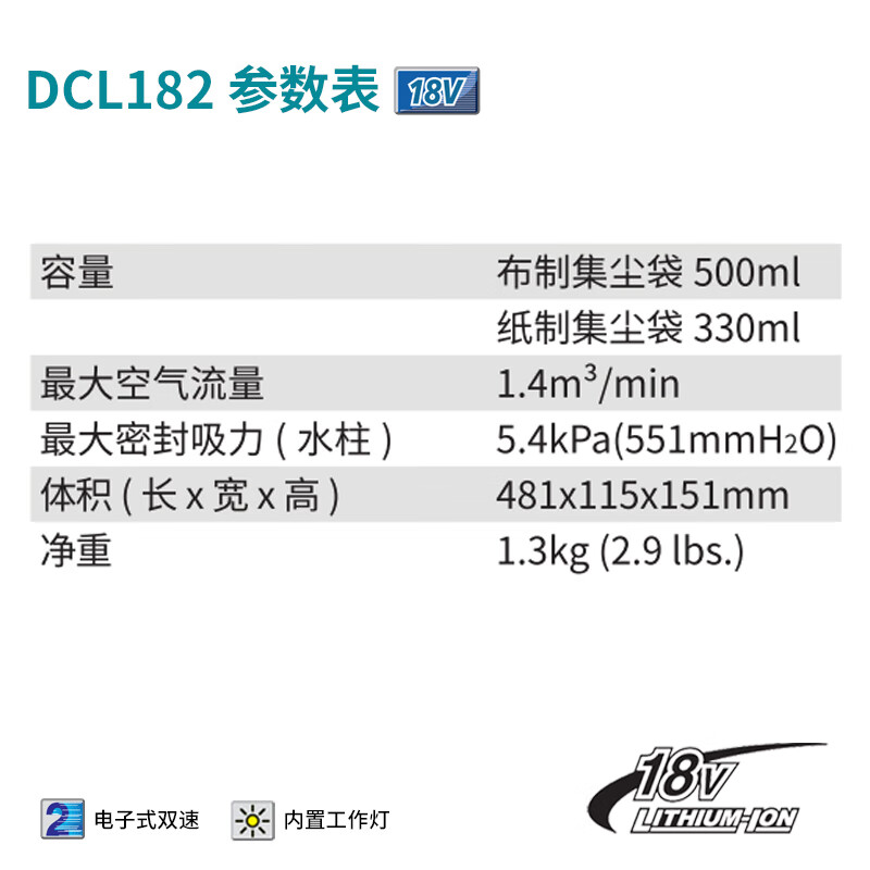 牧田/MAKITA DCL182FRFW锂电池充电式吸尘器手 18V3.0AH一电一充