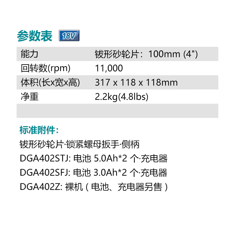 牧田/MAKITA DGA402SFJ角磨机角磨机多功能打磨机 100mm3.0AH两电一充