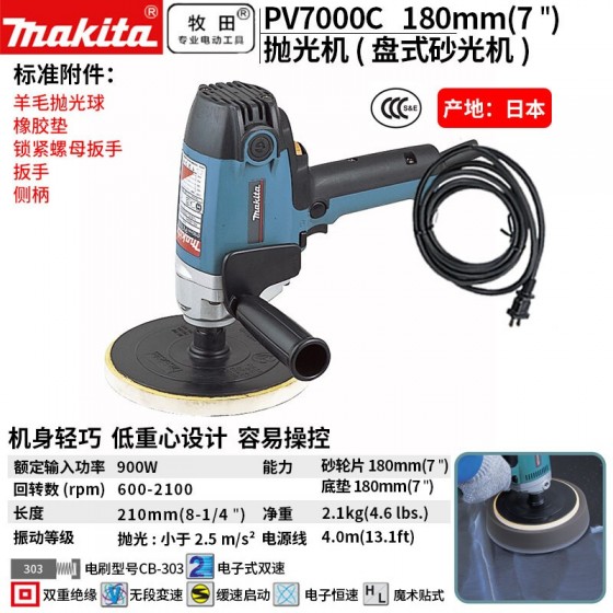 牧田/MAKITA PV7000C盘式抛光机汽车美容高速抛光封釉机电动工具180mm