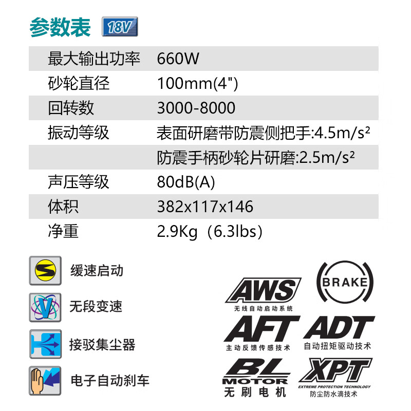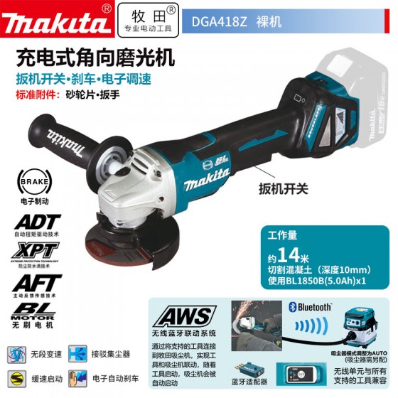 牧田/MAKITA DGA418Z锂电池无刷角磨机 18V裸机不含电池充电器
