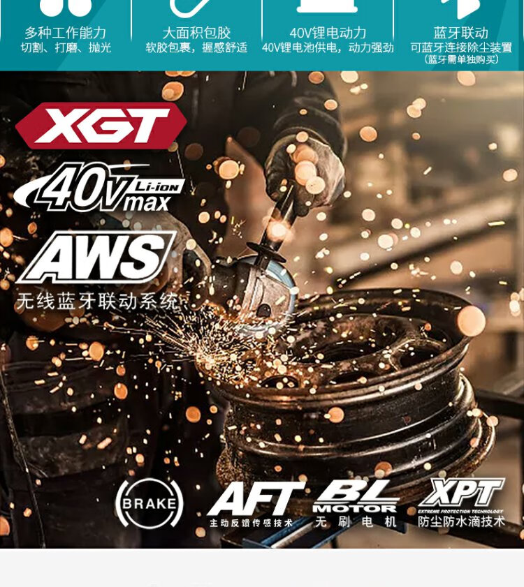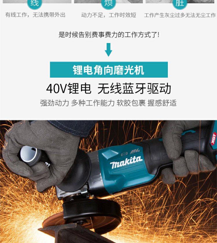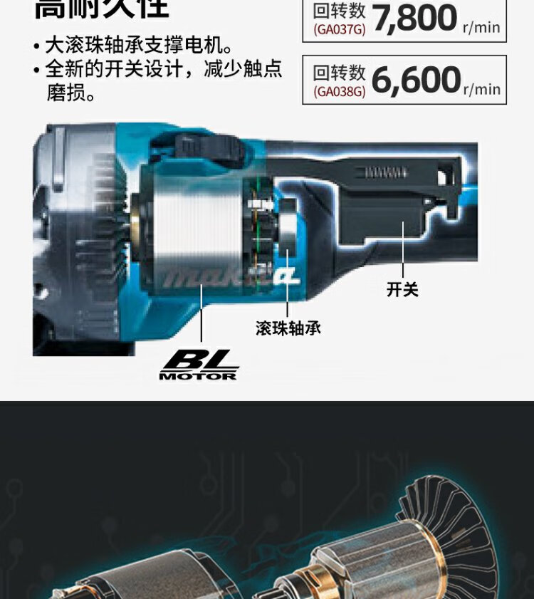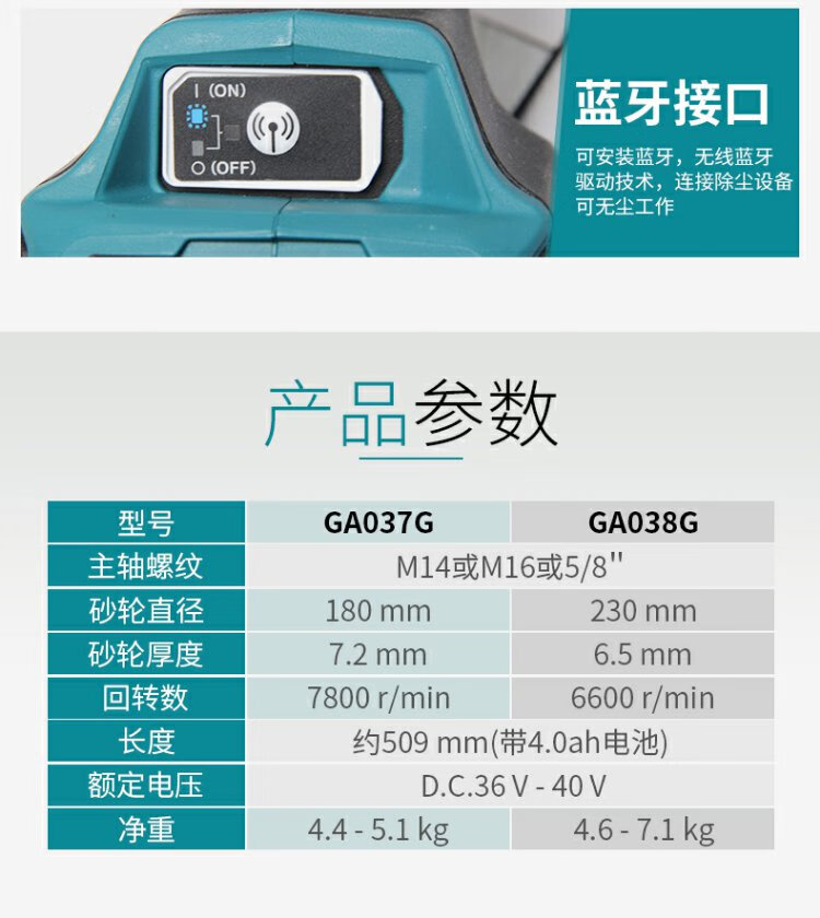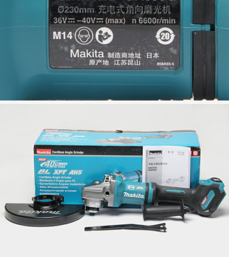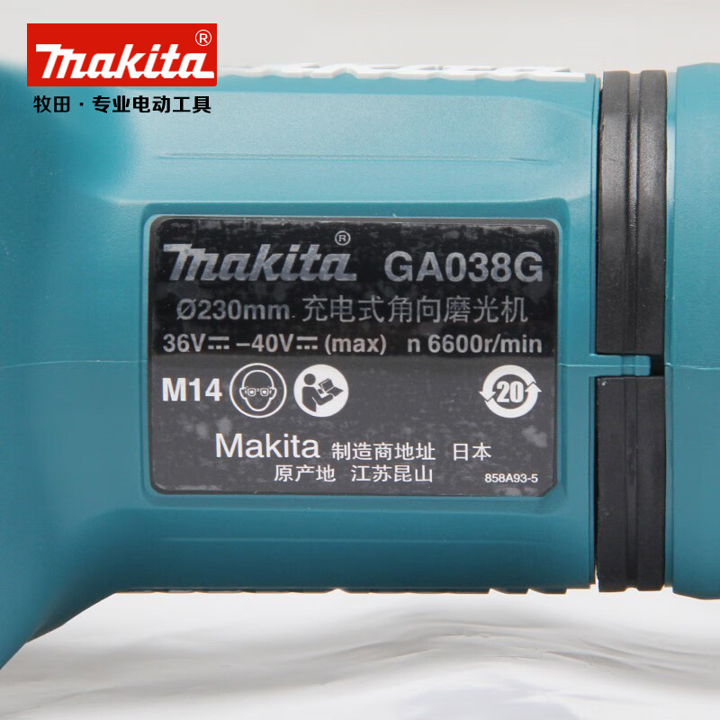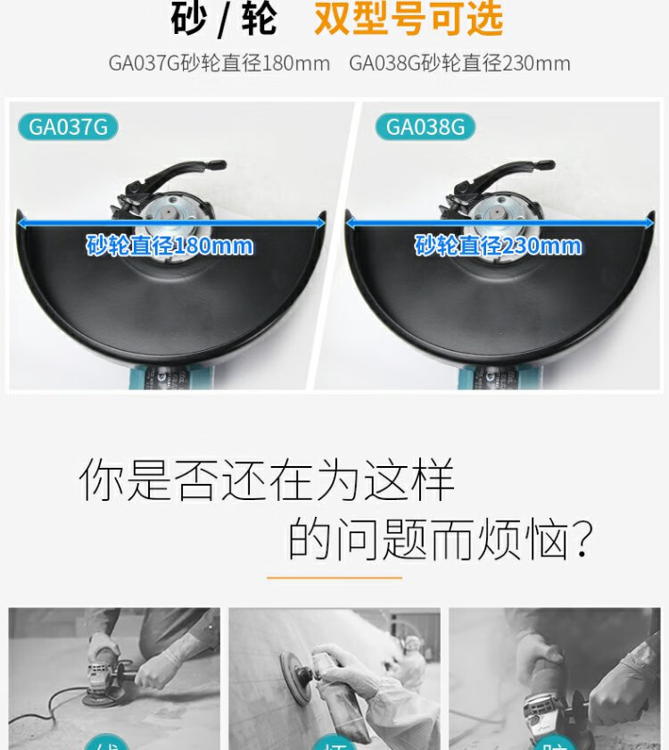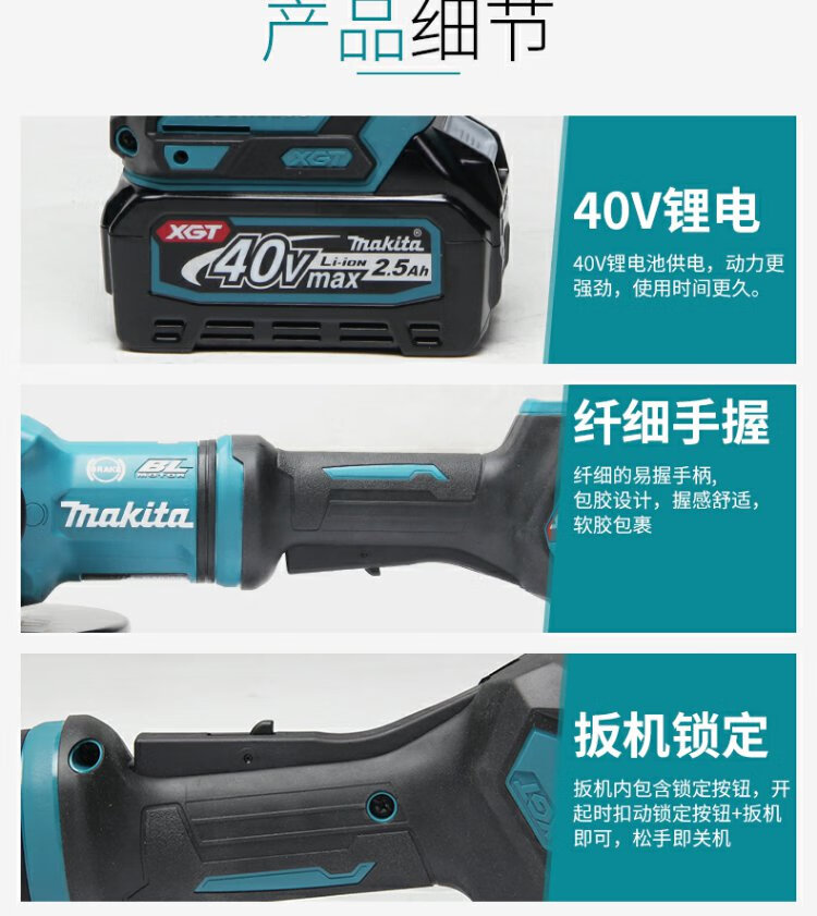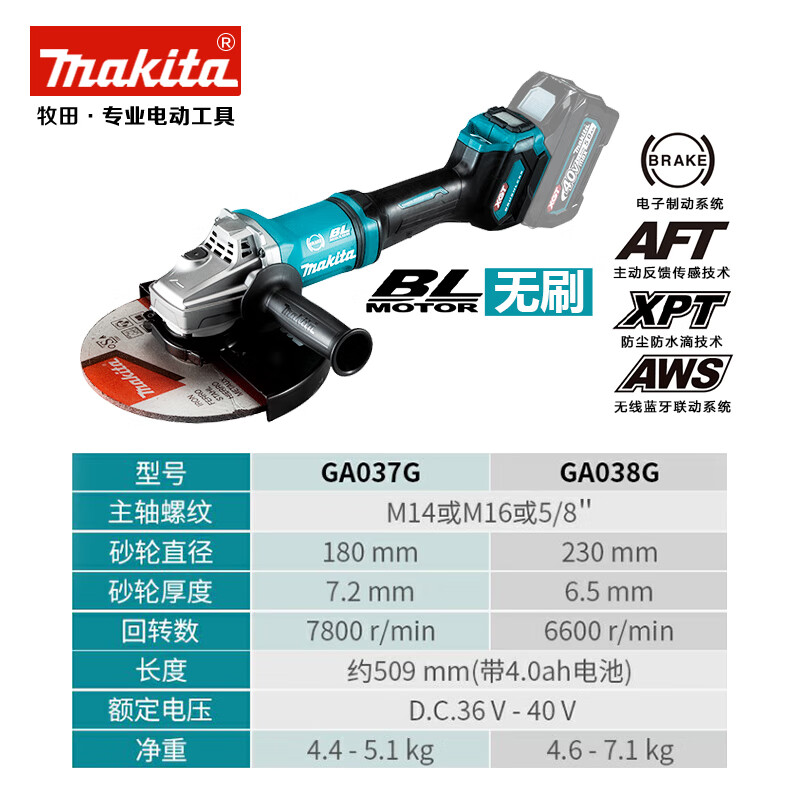 牧田(Makita)40V锂电无刷角磨机GA038G可调速230mm滑动开关1700W GA038GZ【裸机不含电池充电器】直径230mm