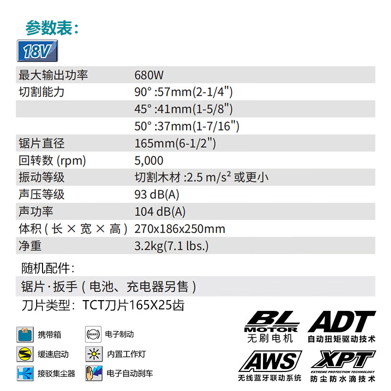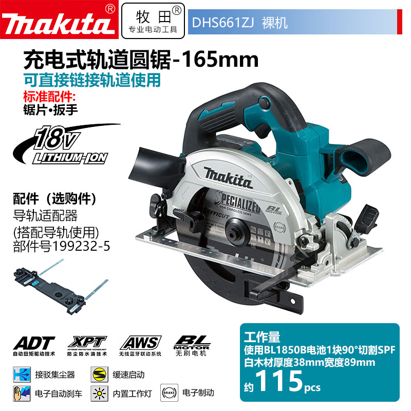 牧田/MAKITA DHS661ZJ锂电池充电式电圆锯 18V 165mm裸机款不含充电器电池