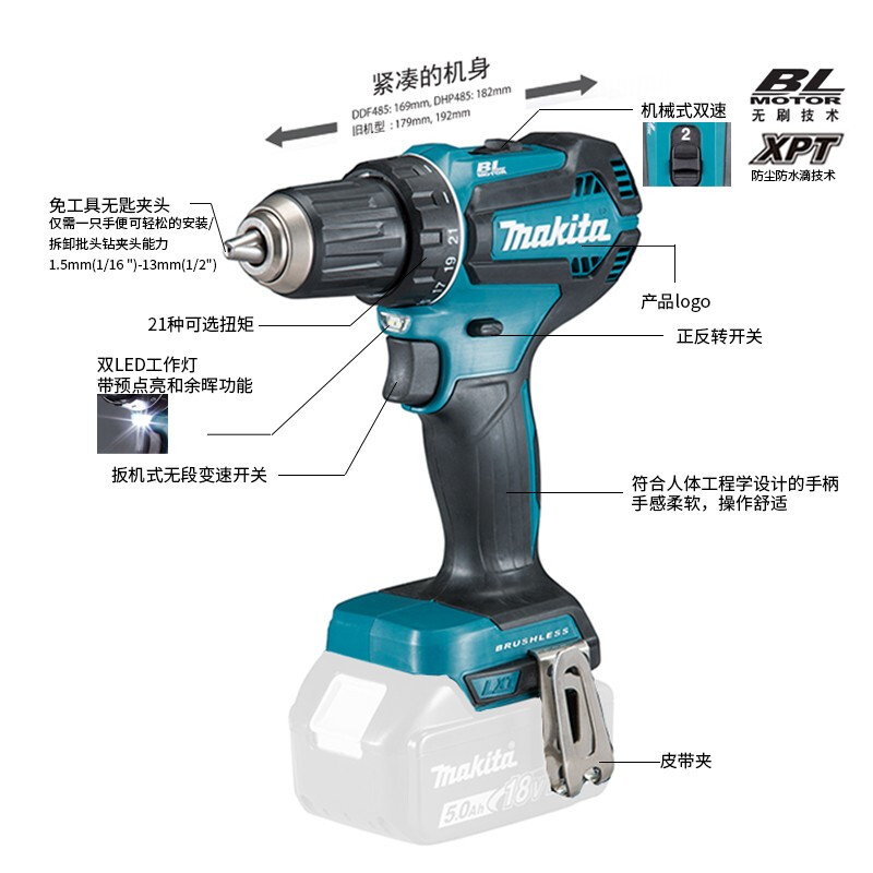 牧田/MAKITA DDF485SFJ无刷锂电池充电式起子 18V3.0Ah两电一充