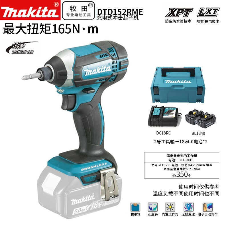 牧田/MAKITA DTD152RME锂电池充电式冲击起子机多功能 18V4.0Ah两电一充