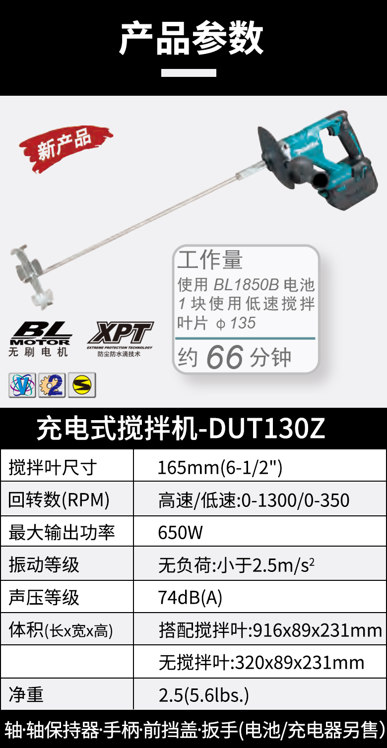 牧田(makita)18V锂电充电搅拌机DUT131Z 裸机