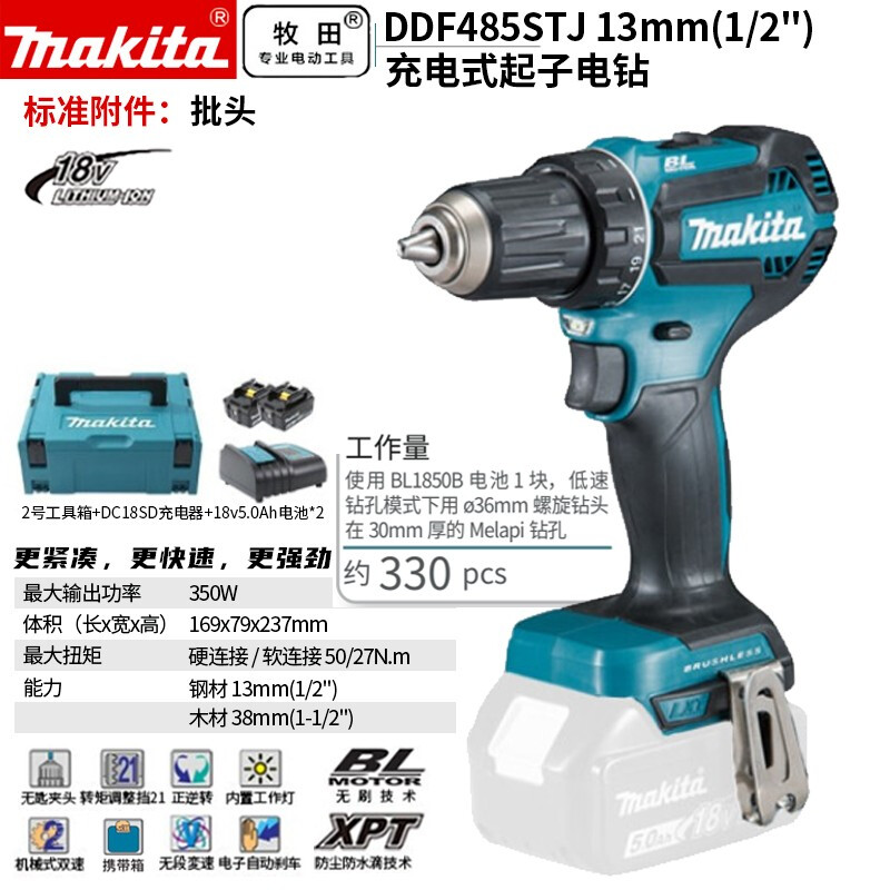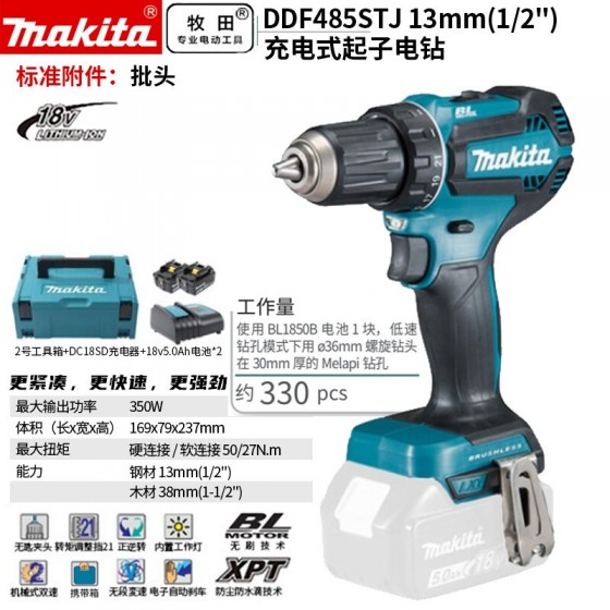 牧田/MAKITA DDF485STJ无刷锂电池充电式起子电钻 18V5.0Ah两电一充