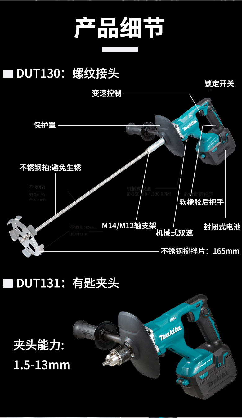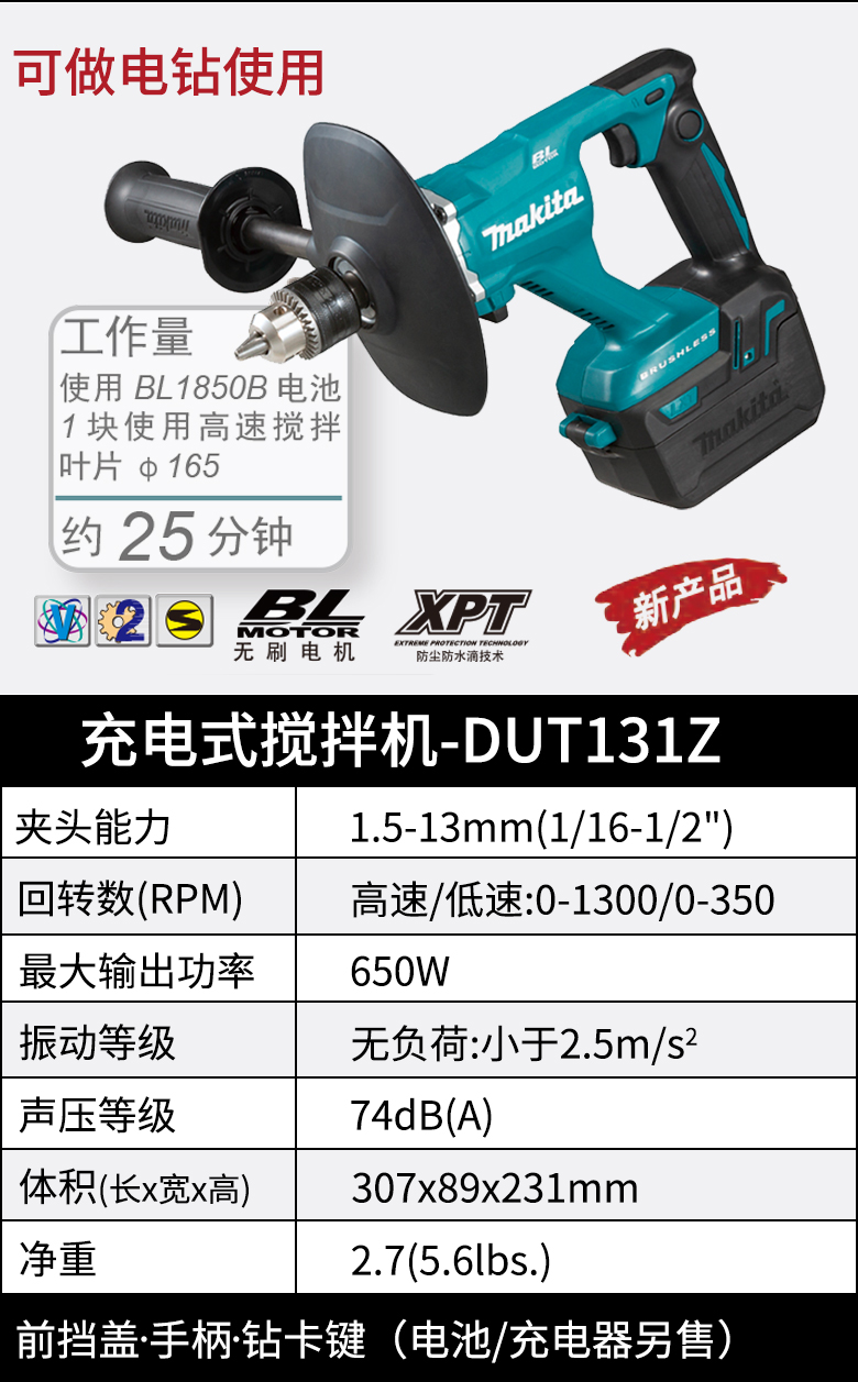 牧田(makita)18V锂电充电搅拌机DUT131Z搅拌钻打灰机 【裸机不含电池充电器】